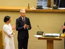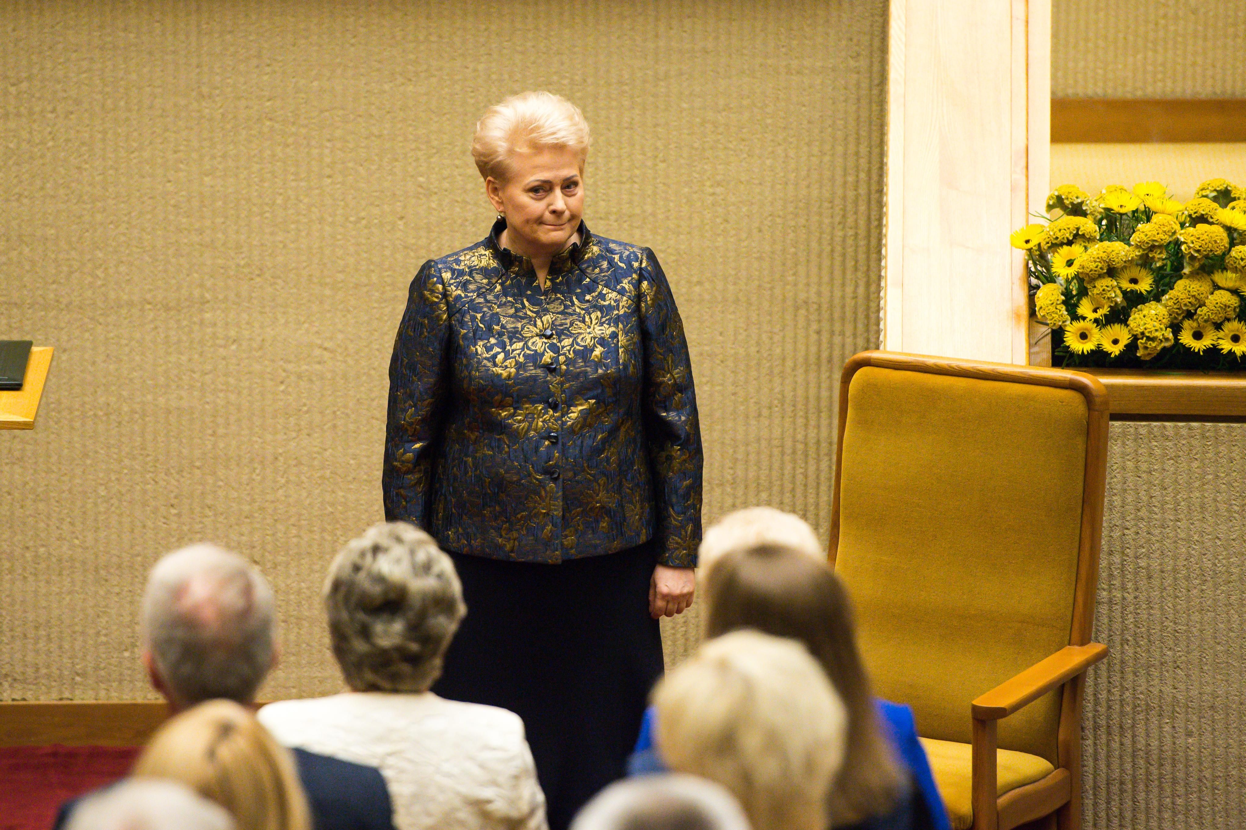 Перед началом церемонии передачи президентского дворца на площади им. С. Даукантаса теперь уже бывший президент (хотя это звание является пожизненным, президенты официально приставку «экс» не получают) в ожидании нового хозяина дворца – Гитанаса Науседы - поблагодарила народ за эти 10 лет.