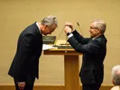 Во время официальной церемонии Д. Грибаускайте вручила Г. Науседе большую государственную печать и Конституцию. Вскоре после этого в качестве определённого символа был спущен флаг Д. Грибаускайте и поднят флаг нового президента, хотя, понятное дело, никаких личных флагов они на время своего руководства Литовским государством специально не заводили.