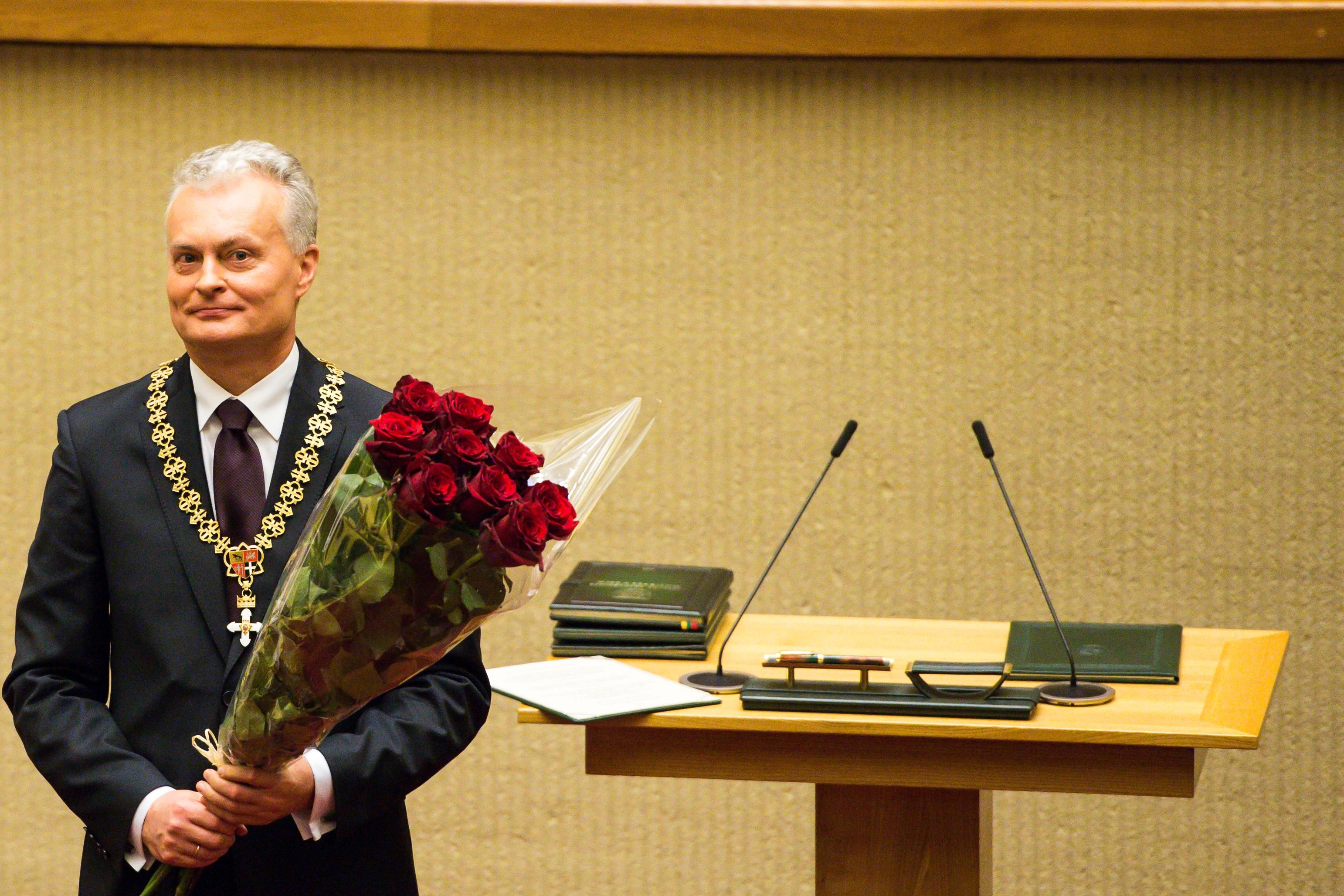 Я решил взять на себя ответственность как Президент Республики, потому что я за утверждение честности, уважения и ответственности в политике и обществе. Я за социальную справедливость и последовательное создание благосостояния для всех. Я за единую, безопасную Литву, имеющую свое прочное видение будущего», - сказал новый руководитель Литвы.