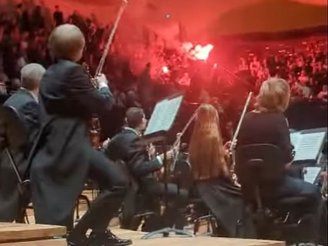 Никто из музыкантов не пострадал. Программу возобновляли несколько раз после перерывов и довели до конца, передает RTL.