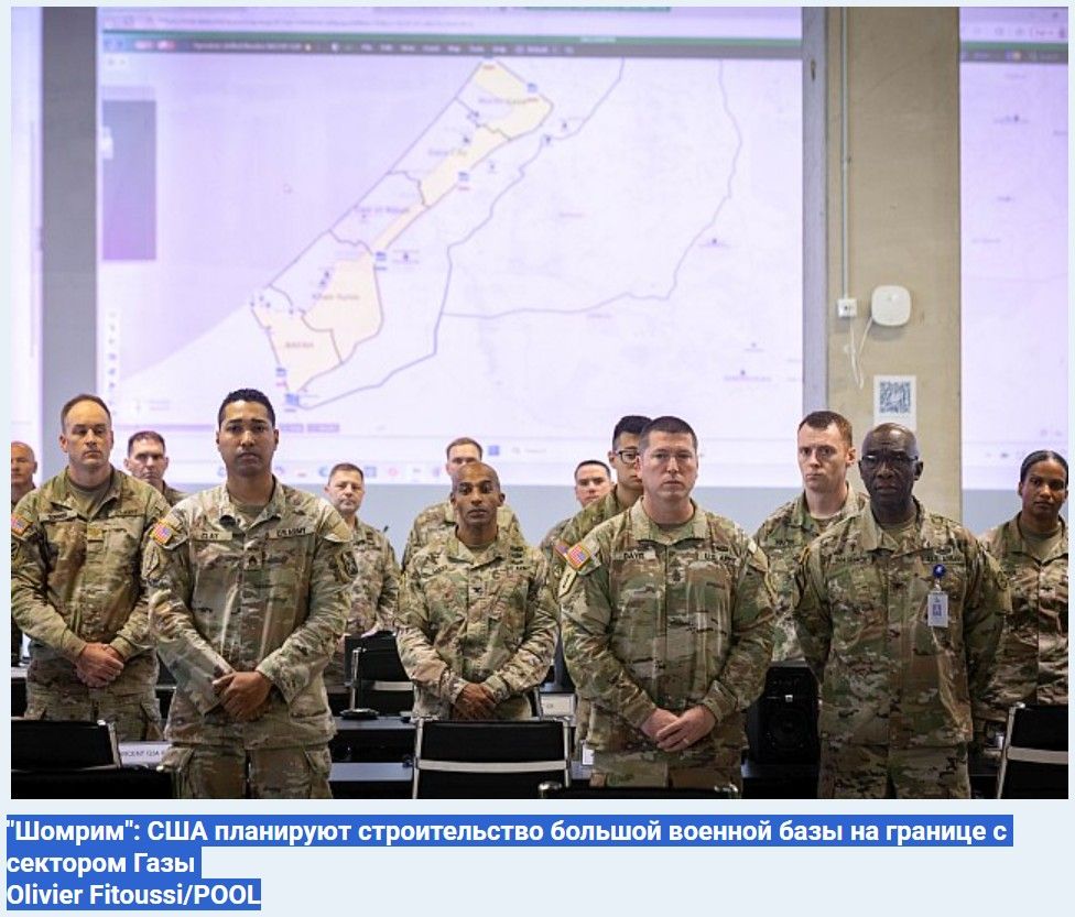 До сих пор военное присутствие США в Израиле было весьма ограниченным. После подписания соглашения о прекращении огня США направили в Израиль примерно 200 военнослужащих, которые действуют из американского командного центра CMCC в Кирьят-Гате. Этот центр должен полностью взять под свой контроль распределение гуманитарной помощи.
