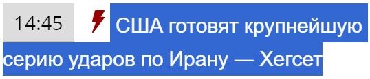 Министр обороны США Пит Хегсет заявил, что 19 марта страна начнет наиболее масштабную серию ударов в рамках продолжающейся воздушной кампании против Ирана (выделено мною). Об этом он сообщил во время брифинга в Пентагоне.