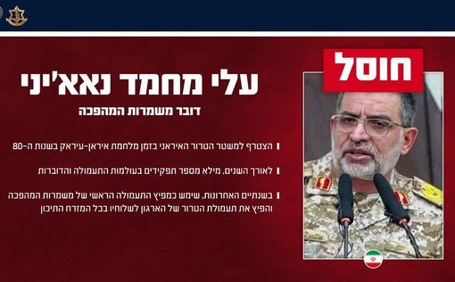 В ходе ночной операции ВВС Израиля, действуя по разведданным военной разведки АМАН, нанесли удар, в результате которого был убит Али Мохаммед Нааини – пресс-секретарь и руководитель системы общественных связей КСИР, говорится в сообщении пресс-службы Армии обороны Израиля.