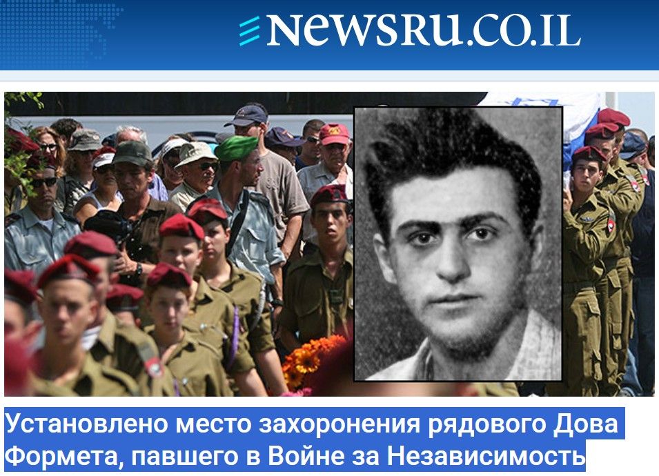 В ближайшее время, спустя почти 78 лет после его гибели, на военном кладбище в Маоз-Хаиме состоится государственная церемония по установке памятной плиты с именем Дова Формета (выделено мною).