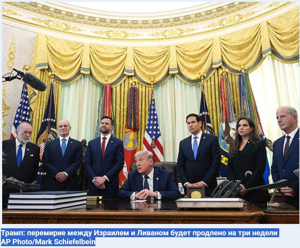Президент США Дональд Трамп заявил в соцсети TruthSocial, что перемирие между Израилем и Ливаном будет продлено на три недели.