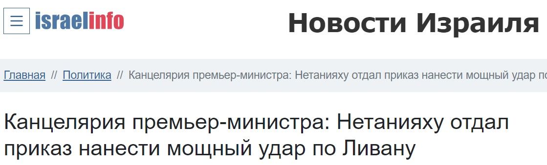 Канцелярия премьер-министра сообщила вечером, что Нетанияху отдал ЦАХАЛу приказ "нанести мощные удары по объектам Хизбаллы в Ливане в ответ на непрекращающиеся нарушения перемирия".