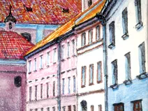 Выбирая репродукцию для следующего номера «Обзора», вильнюсский художник Леонид Мироненко остановился вот на этой картине (на снимке). При этом он честно признался: «Названия улиц в сегодняшнем Вильнюсе так часто меняются, что за всеми переменами и не уследишь. Поэтому я затрудняюсь сказать, как называется эта улица сегодня. Раньше она, насколько я помню, называлась Биржу».