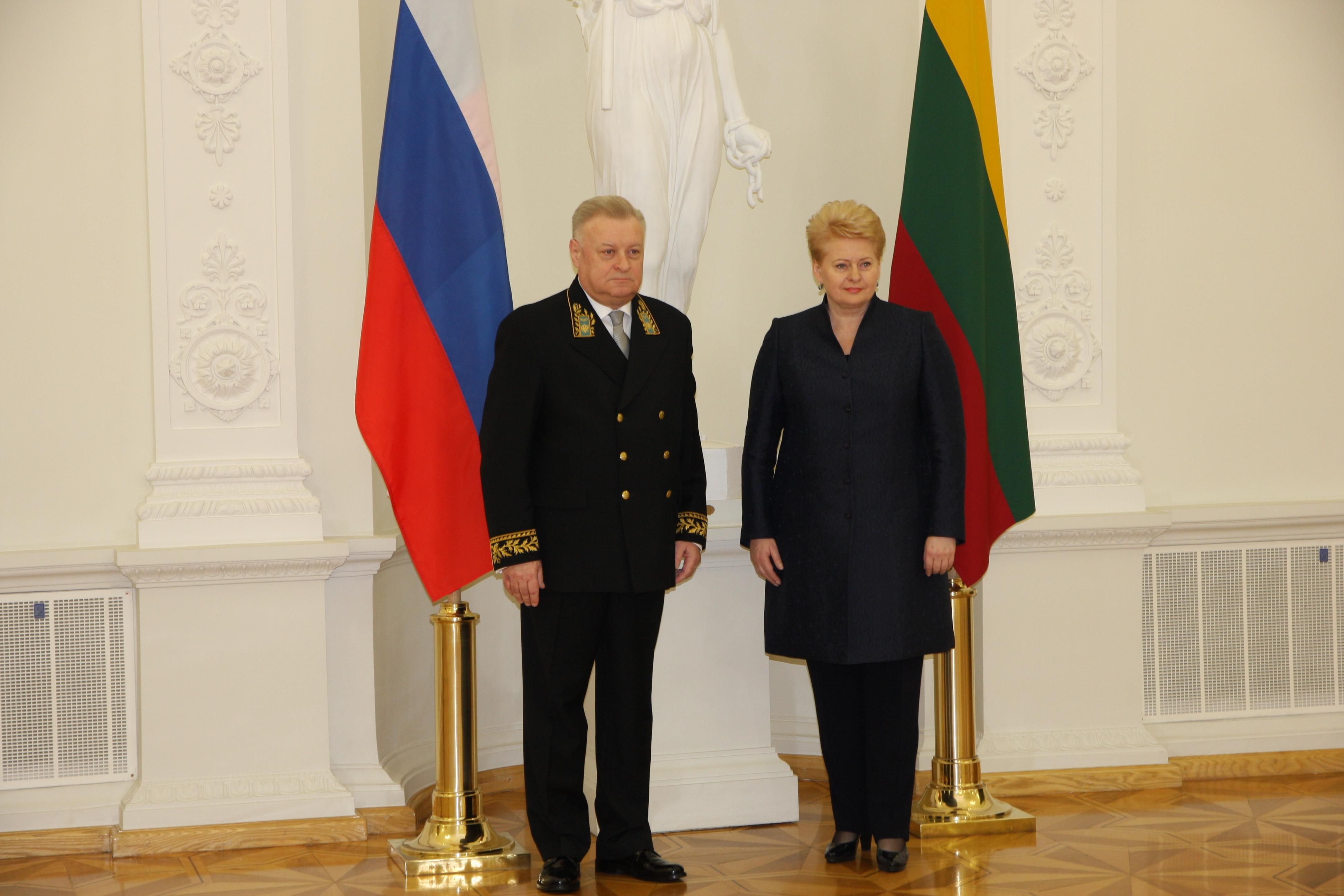 Сегодня, 12 декабря, Президент Литвы Даля Грибаускайте приняла верительные грамоты нового посла России в Литве Александра Удальцова.