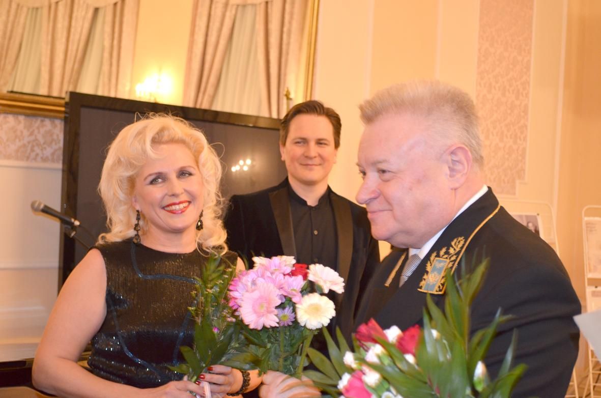 Вечером же в здании Посольства Российской Федерации в Литовской Республике был дан приём по случаю Дня дипломатического работника. Перед собравшимися с небольшим концертом выступили артисты Театра оперы и балета Литвы, лауреаты международных конкурсов (на снимке).