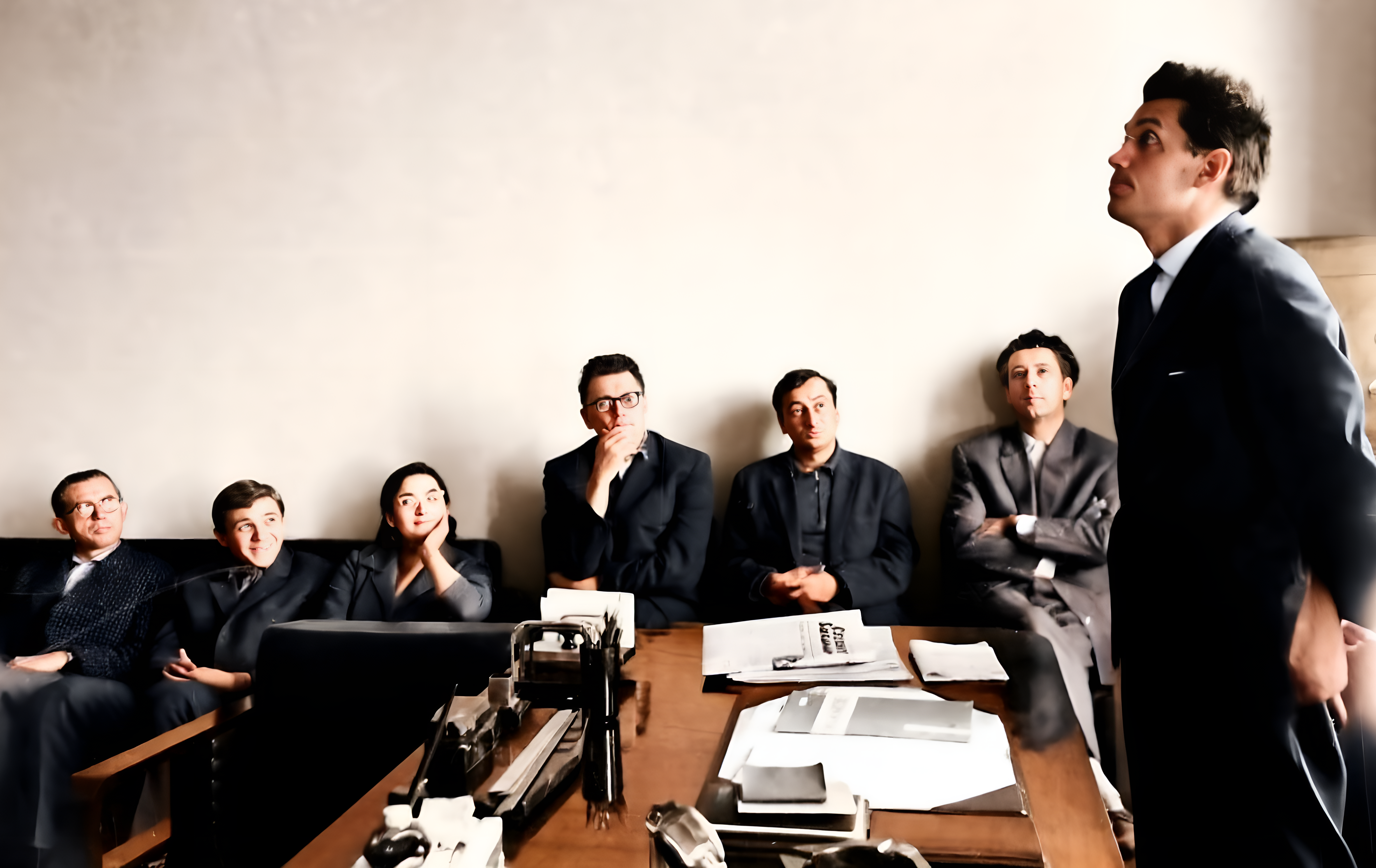 Частыми гостями нашей редакции были многие известные люди. Одним из таких был художник Эрикас Варнас. Он часто приходил в наш отдел, мог посидеть, поговорить, просто помолчать и так же незаметно уйти. Однажды он явился возбуждённый - хочу сделать рисунок к полёту искусственного спутника «Луна» (спутник только что был запущен). Мы шумно поддержали его идею и на наших глазах появился рисунок.