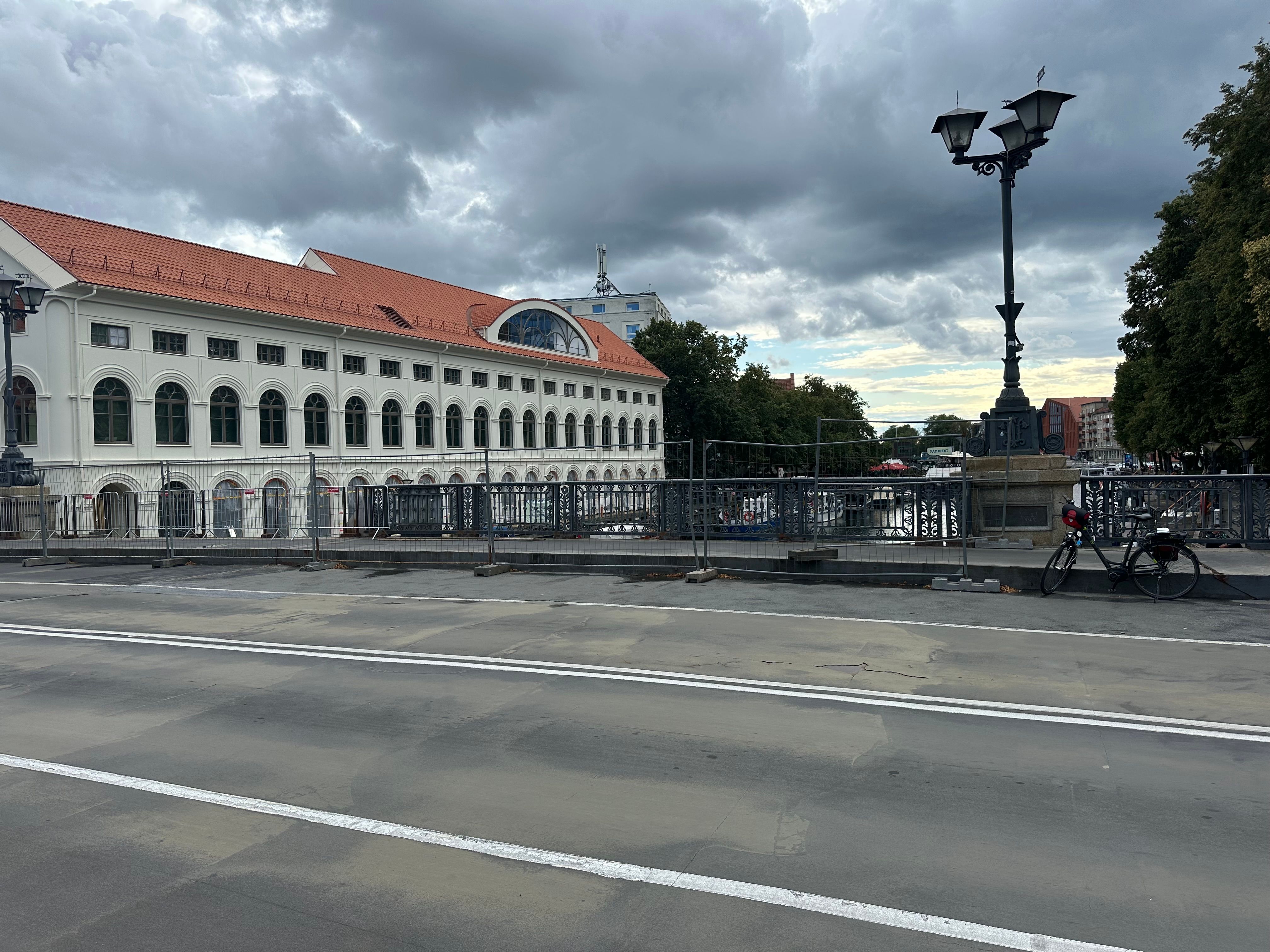 Несколько дней назад в Клайпеде на мосту Биржос была закрыта одна пешеходная зона для того, чтобы там оборудовать дополнительные перила для людей.