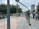 Эту зону огородили забором, но транспорт и пешеходы по одной стороне моста могли пересекать этот мост.