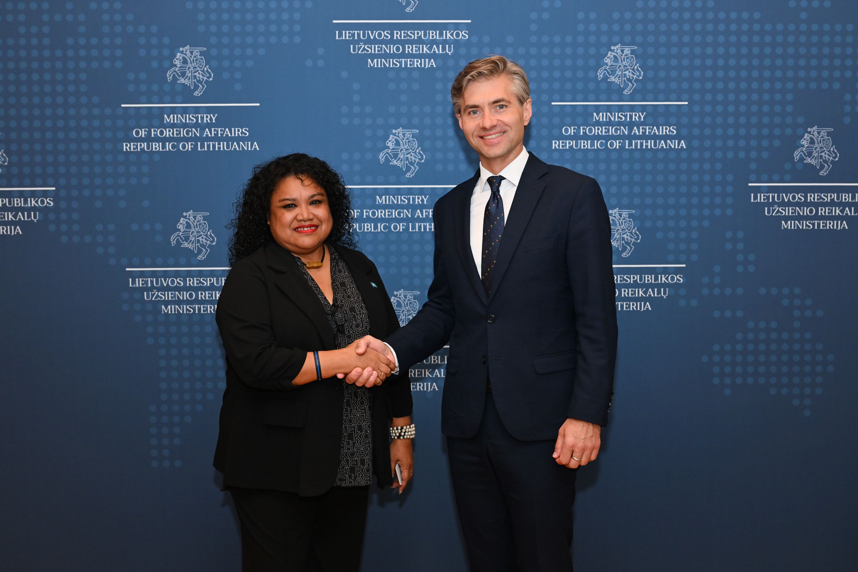 4 сентября исполняющий обязанности министра иностранных дел Литвы Кястутис Будрис встретился с министром юстиции Республики Палау Дженнифер С. Олегерийл, сообщается в пресс-релизе литовского внешнеполитического ведомства.