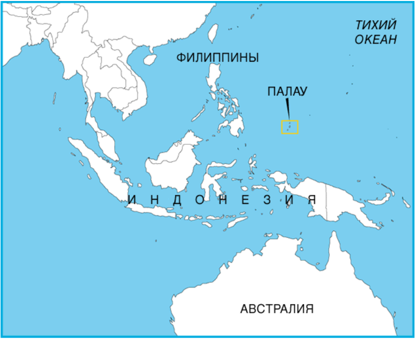 Палау - островное государство, ассоциированное с США, в Филиппинском море Тихого океана, расположенное в 800 км к востоку от Филиппин и к северу от Индонезии.
