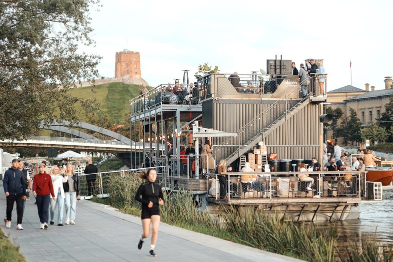 Набережная реки Нярис – одно из самых оживлённых и привлекательных мест Вильнюса, где тысячи людей постоянно проводят свободное время. Однако ещё никогда не было такого места у реки, которое сочетало бы в себе отдых, ночную жизнь и культуру, хотя такая концепция очень популярна и в других европейских городах.