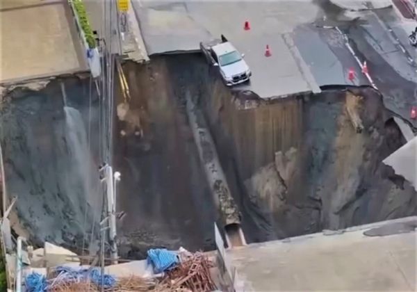На опубликованных кадрах видно, что кусок проезжей части в считанные мгновения уходит под землю вместе с полицейским автомобилем и электрическими столбами. При этом участок был предварительно оцеплен сотрудниками экстренных служб, поэтому дорога была перекрыта и людей на участке не было.