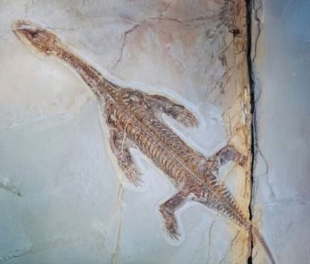 Длина лариозавра — всего около 60 см, но строение тела говорит о мощной мускулатуре. Похоже, этот древний пловец передвигался в воде, как морской лев — активно работая передними конечностями. А чешуя на коже напоминает крокодилью.