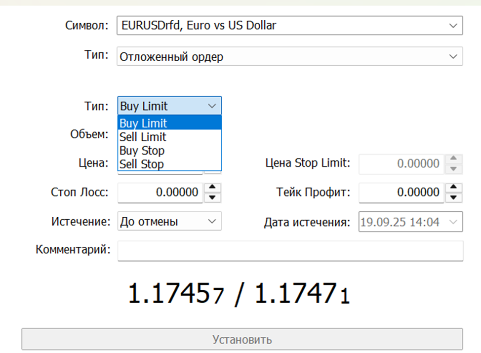 Если сделка должна быть инициирована не сейчас, а при выполнении ценового условия, в трейдинге применяют отложенные ордера — лимитные и стоп. В MetaTrader предусмотрено шесть разновидностей: