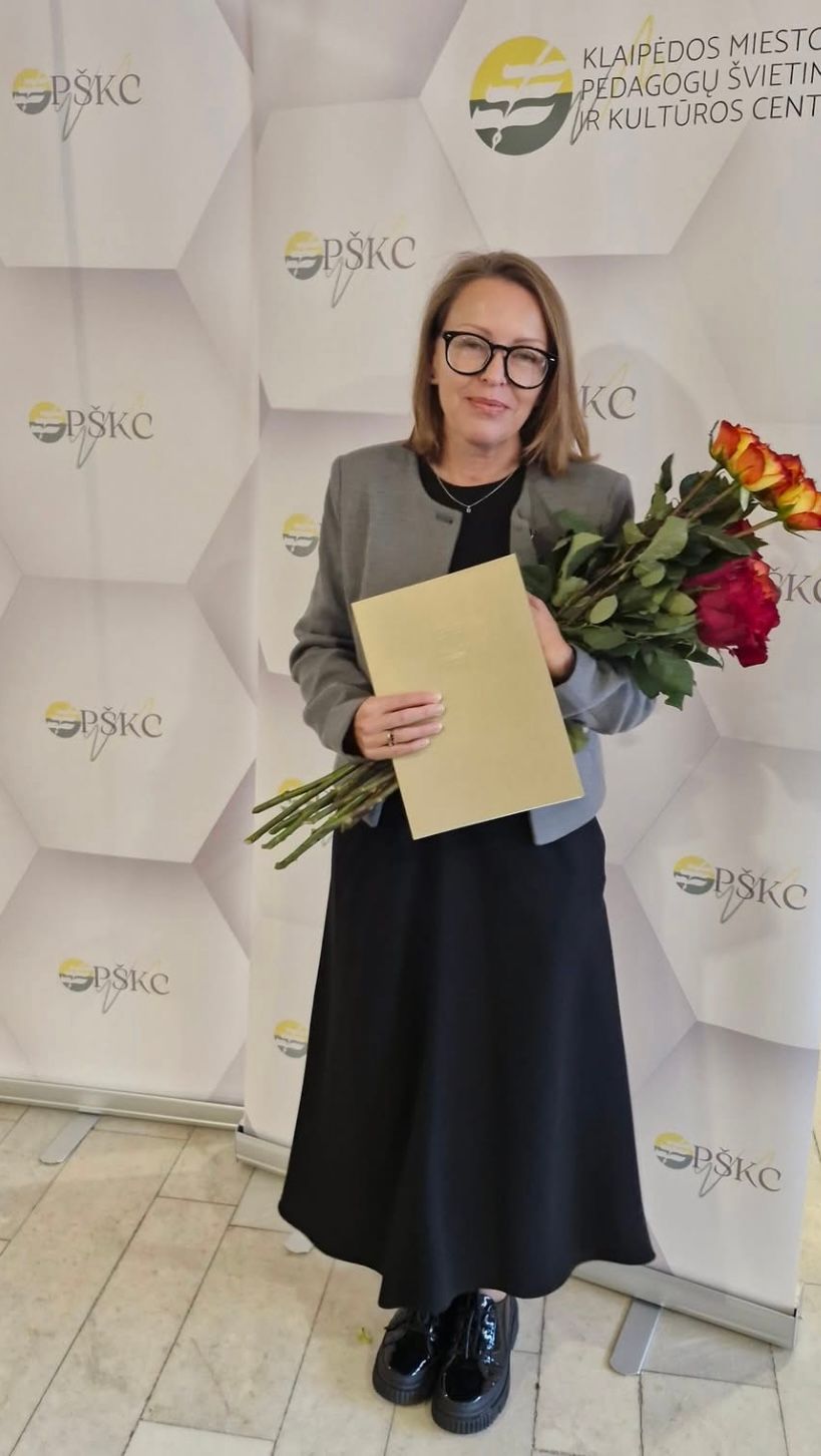 2 октября в Клайпеде по давней традиции вновь на сцене торжественно чествовали педагогов и руководителей образовательных организаций с праздником - с Днём учителя! Титулa заслуженного Учителя 2025 года была удостоена Регина Винджигалскене, учитель студии «Keberiokšt» молодёжного центра Королевы Луизы.