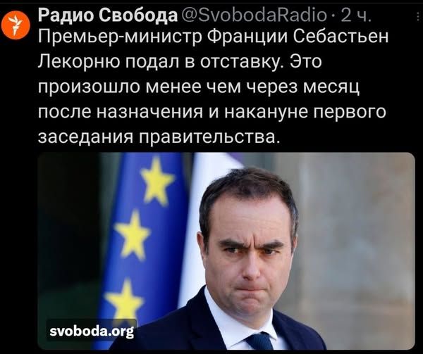 Премьер-министр Франции Себастьен Лекорню подал прошение об отставке, Эмманюэль Макрон его принял. Лекорню был назначен на должность только 9 сентября. Накануне он представил часть нового кабинета министров.