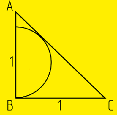 В треугольнике ABC угол B прямой, AB = BC = 1. Полуокружность с центром, лежащем на AB, касается AC. Найдите площадь полукруга.