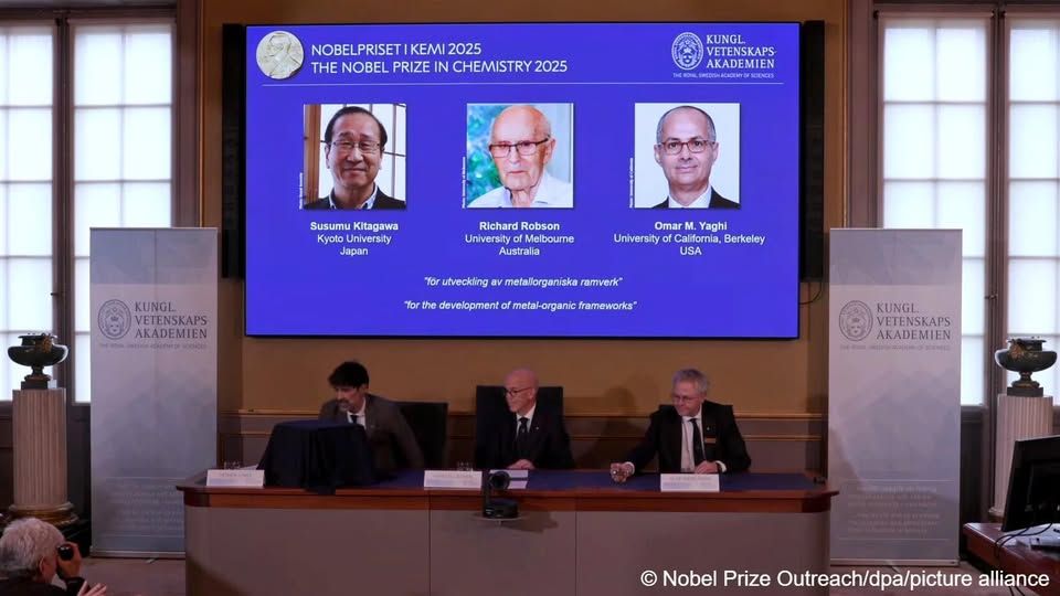Согласно решению Нобелевского комитета в Стокгольме, премия в 2025 году вручается за "разработку металлорганических каркасных структур". Они могут использоваться, например, для фильтрации воды из воздуха в пустынях, улавливания углекислого газа или хранения токсичных газов. Подобные структуры также применяются при катализе химических реакций.