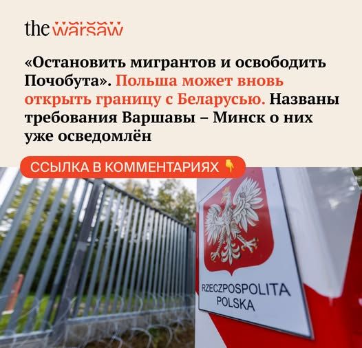 Польская сторона требует от Беларуси: остановить миграционный кризис на границе, освободить Анджея Почобута, приговоренного к восьми годам лишения свободы и признанного политзаключенным, а также сотрудничать в расследовании убийства польского солдата Матеуша Ситека.
