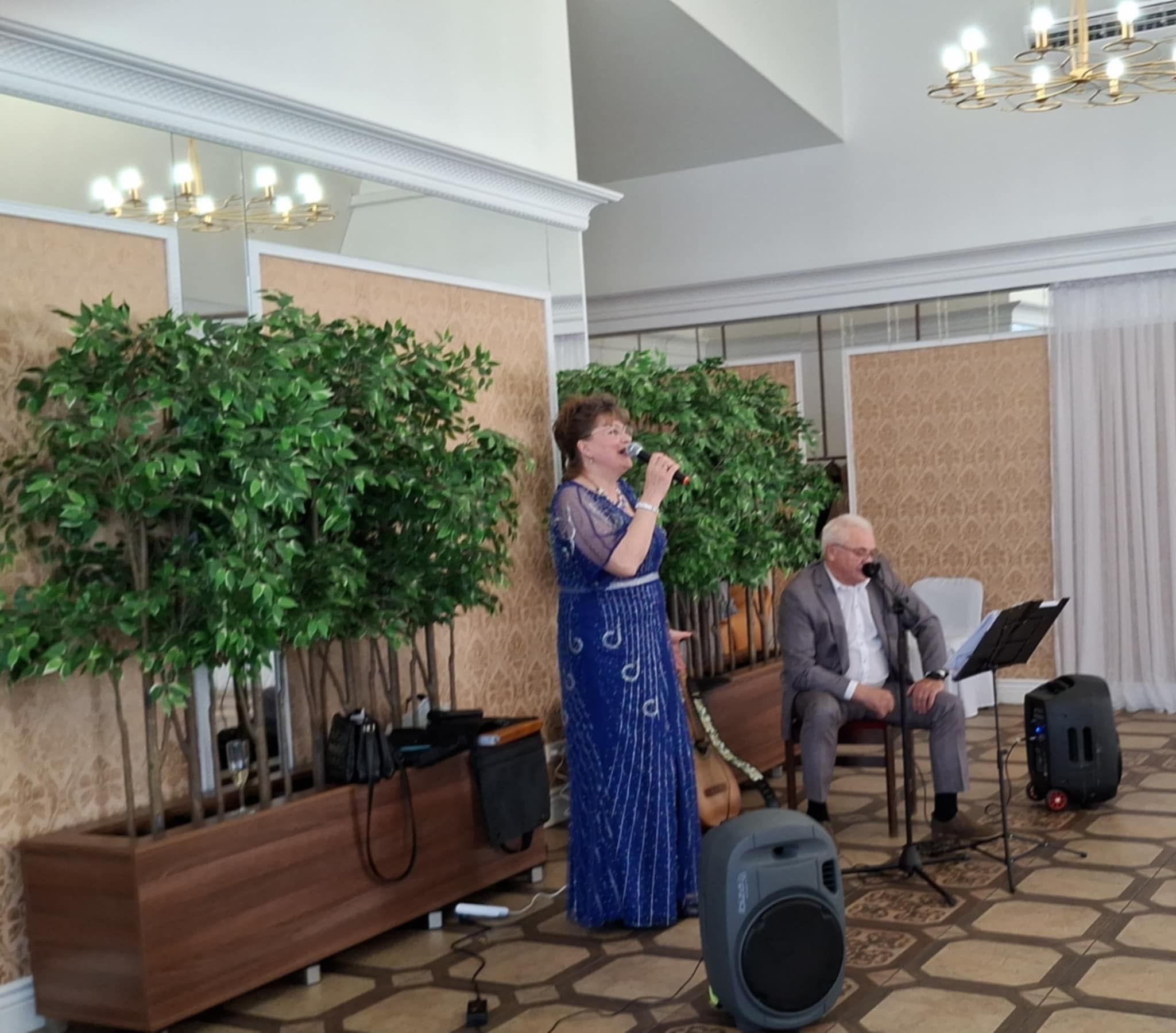 Поздравления, в том числе и музыкальные, прозвучали также и от приглашённых гостей из Вильнюса - дуэта Вероники Синкевич и Станислава Бейнера, представлявших столичный клуб «Салон романса».