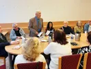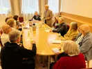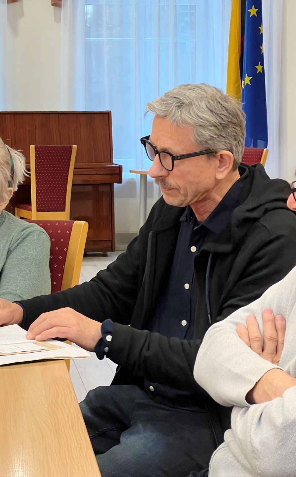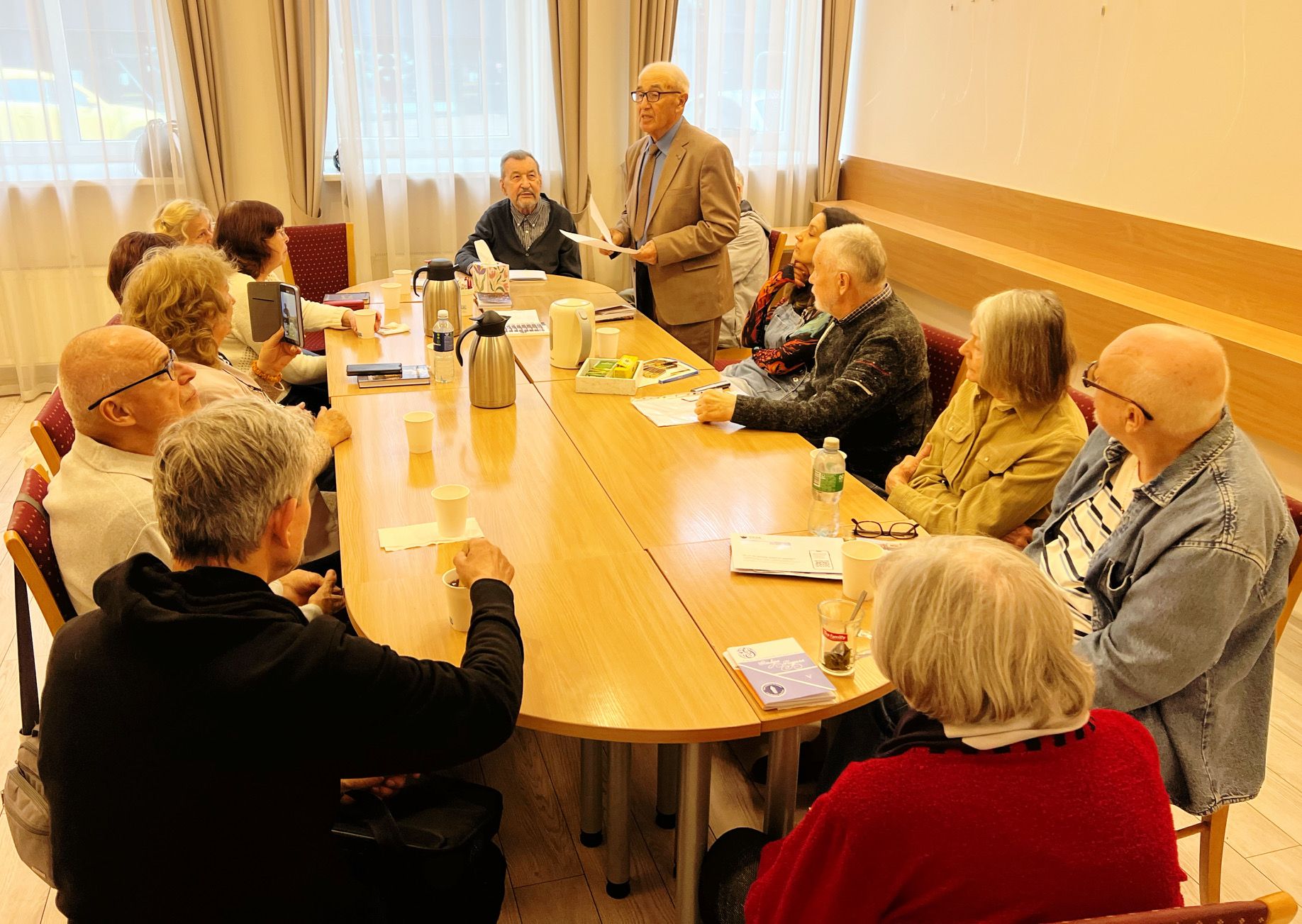 В уютной зале царила тёплая, творческая атмосфера. За круглым столом собрались не только члены ЛО «Логос», но и гости из других литературных организаций, среди них – Самоилас Лорманас и Анна Яремчук (объединение «Вингис»), Георгий Почуев (студия «Плеяда»), Валентина Скарджювене, а также Франц Радзивилович и Елена Соловьёва.