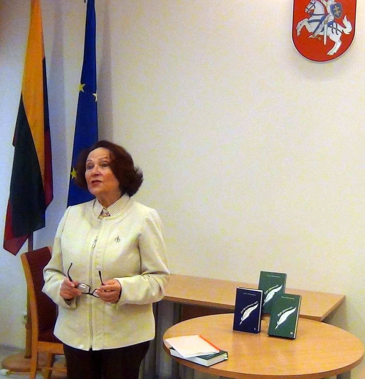 В заключение выступила магистр русистики Вильнюсского университета Виолета Грейцюн, которая зачитала выдержки из рецензии на первый том «Для вдохновенного пера», а также слово читателя, опубликованное во втором томе «Перо озвучит слово».