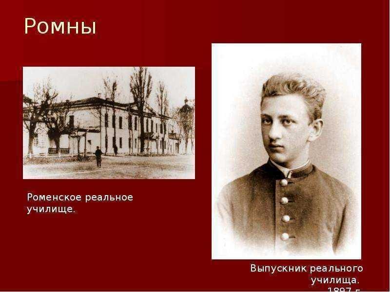 Физикой он заинтересовался ещё в годы учения в Ромненском реальном училище. В поисках ответа на мучившие его вопросы о природе света и запаха, он, окончив училище, прибыл в 1897 году в Петербург в надежде научиться искусству физического эксперимента. Трехпроцентная норма и отсутствие классического гимназического образования закрывали ему дорогу в Петербургский университет, поэтому он остановил свой выбор на лучшей по тому времени технической школе – Петербургском технологическом институте.