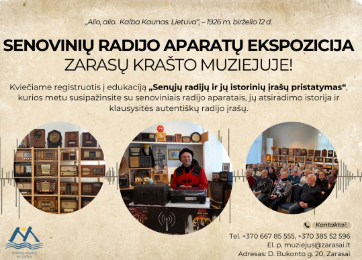 Подробную информацию о находящейся в музее коллекции можно получить, побывав на познавательном занятии «Senųjų radijų ir jų istorinių įrašų pristatymas».