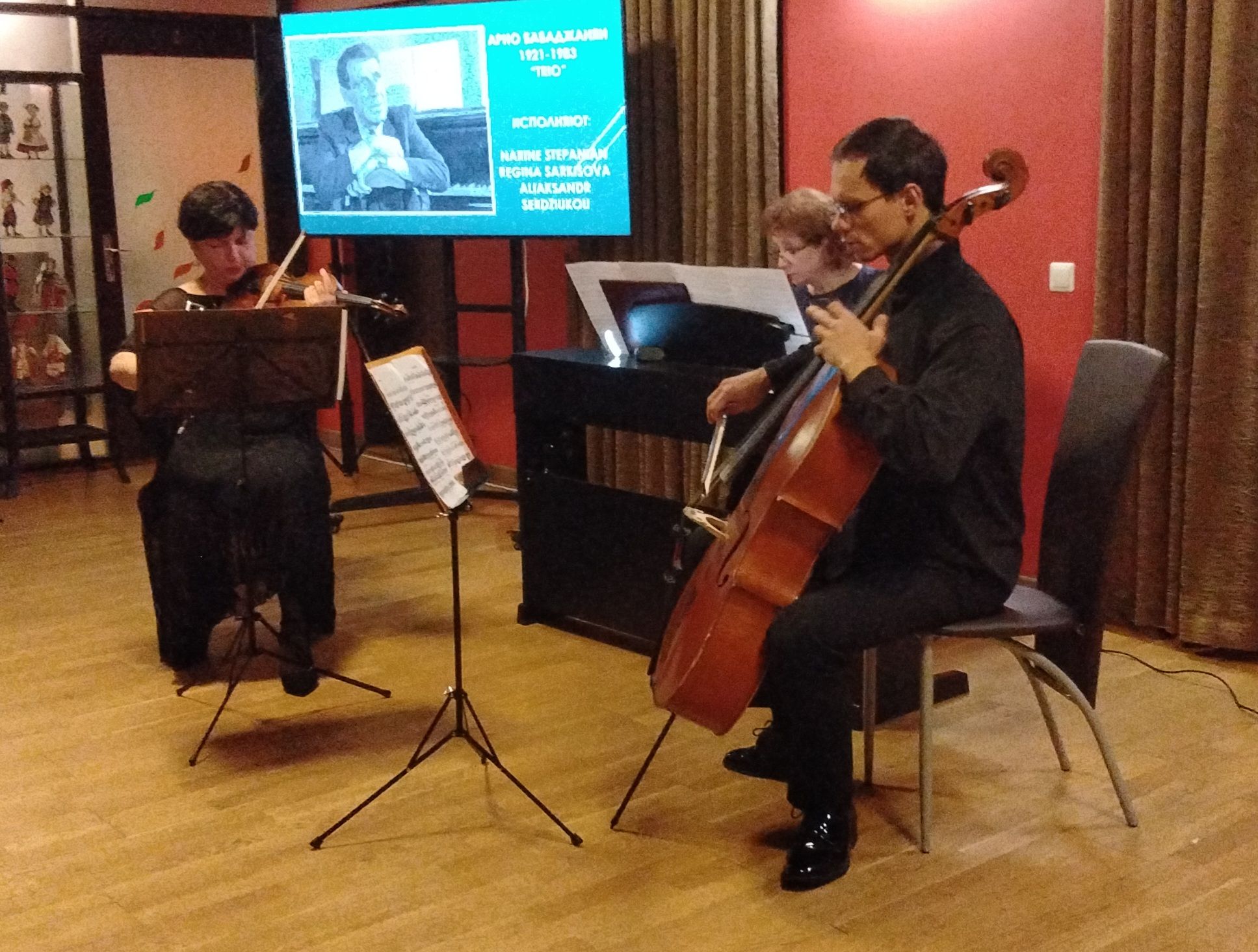 Несмотря на ненастную погода, в уютном зале в Парке скульптур профессиональные музыканты вместе с благодарными зрителями создали неповторимую атмосферу единения и вдохновения: Нарине Степанян (фортепиано), Регина Саркисова (скрипка), Анита Барлоте (флейта), Викте Набажене (альт), Александр Сердюков (виолончель).