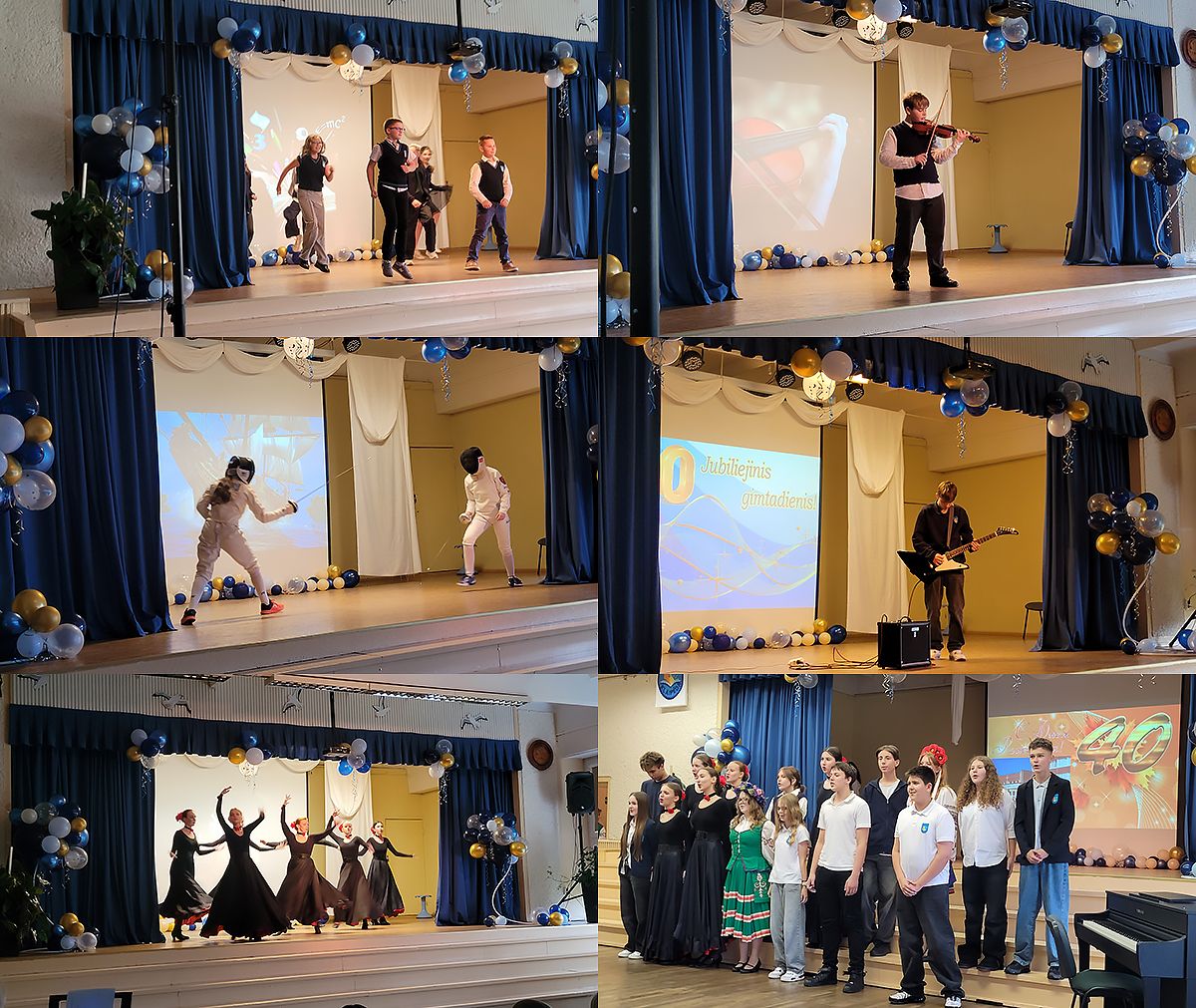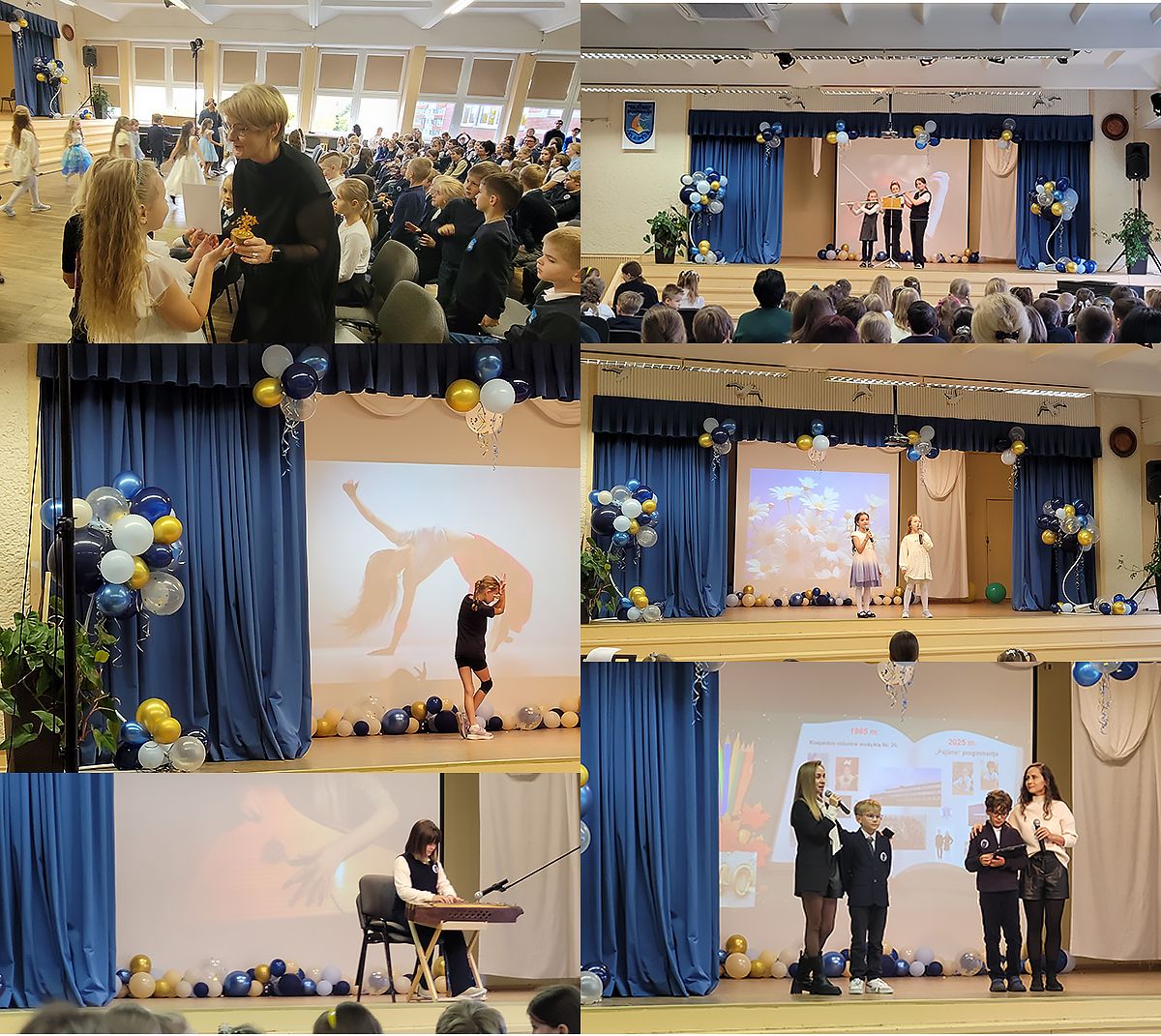 Звучали тёплые слова, песни и стихи, на экране оживали фотографии из школьного архива и видеопоздравления от завуча школы Марины Кузнецовой и выпускника нашей школы, капитана дальнего плавания, капитана-наставника ТМЛ, члена Совета Ассоциации капитанов Литвы Дениса Легензова. Сцена превратилась в мост между поколениями — учителя, ученики, выпускники — все были вместе, как одна семья.