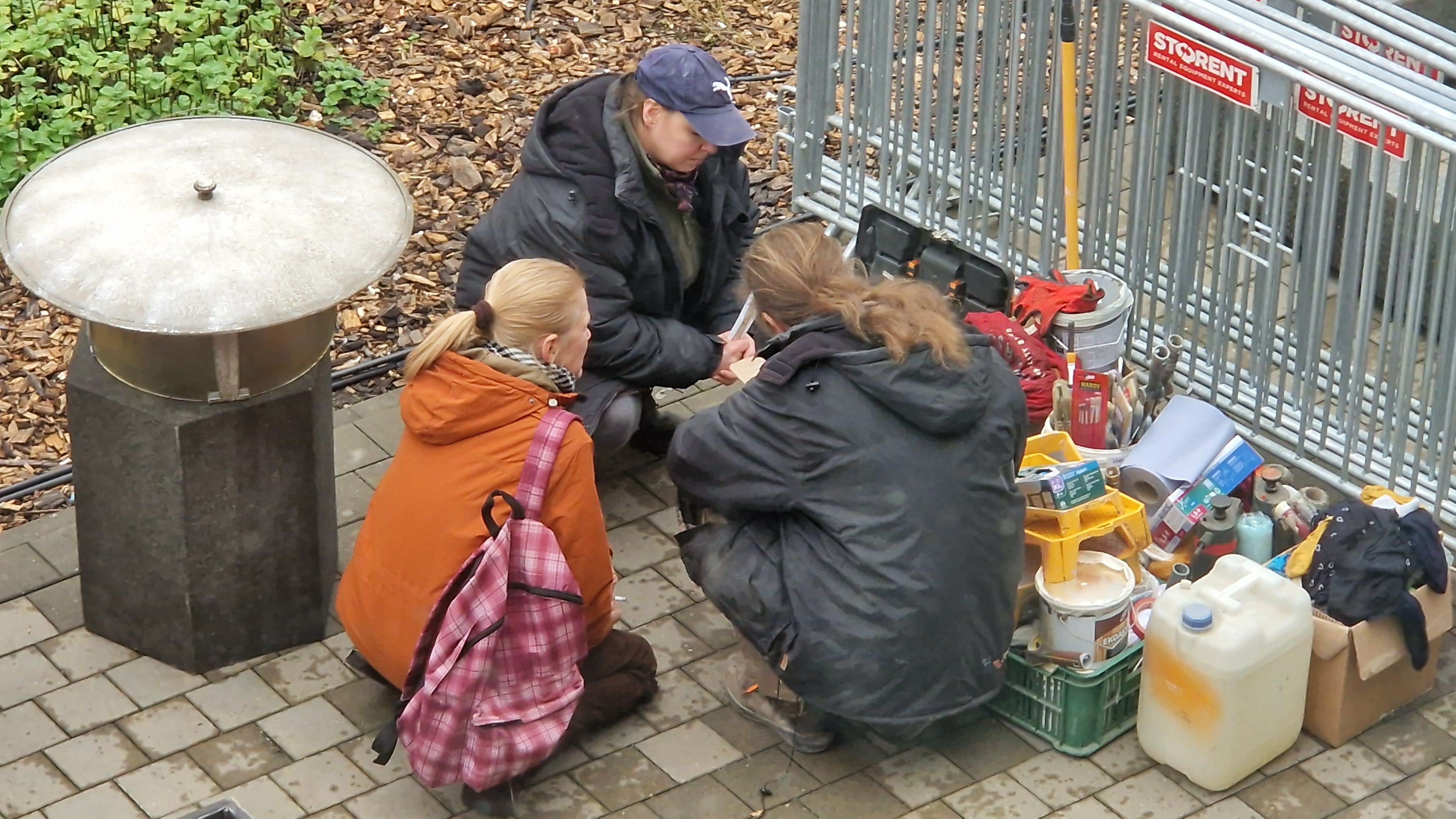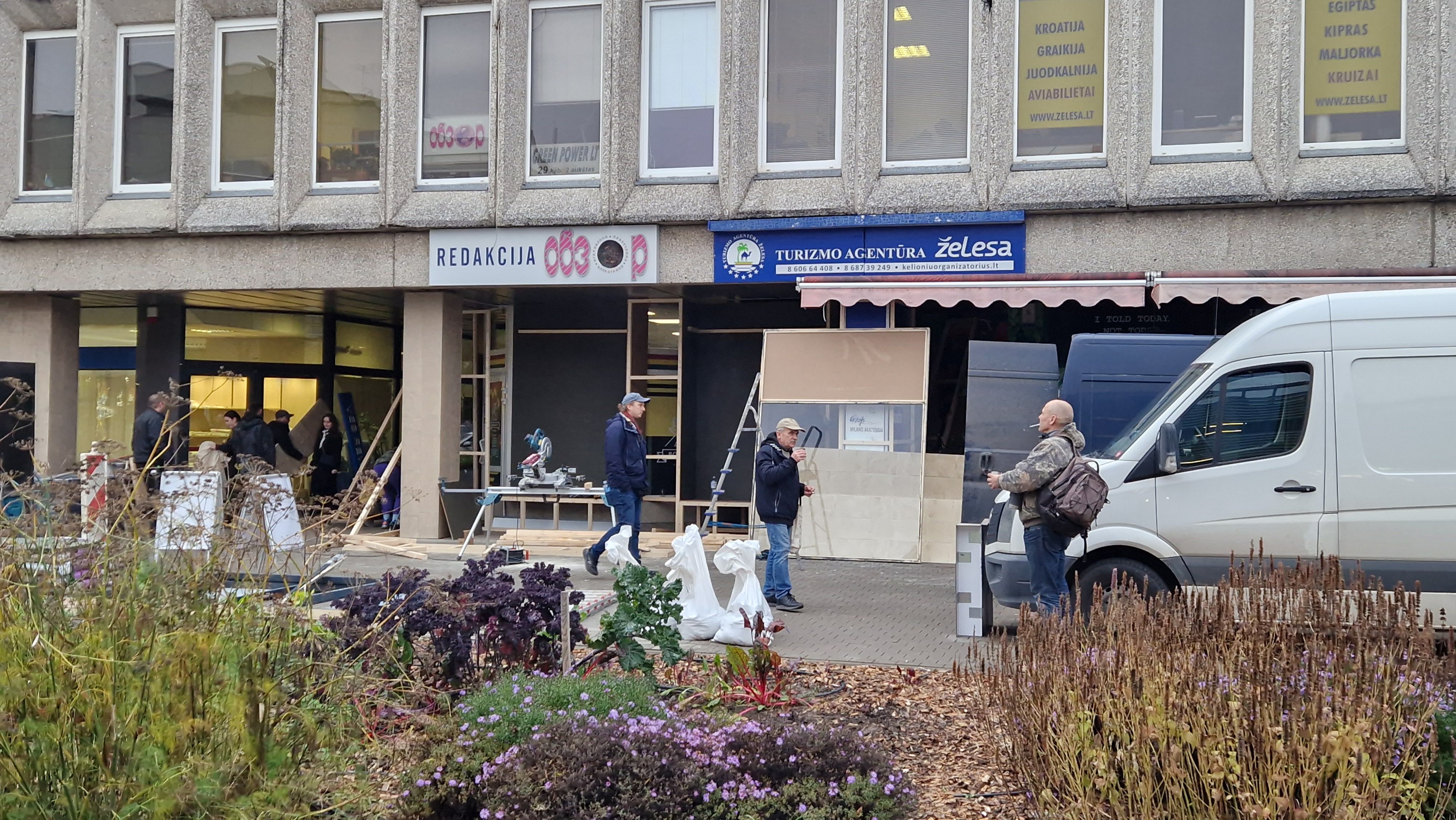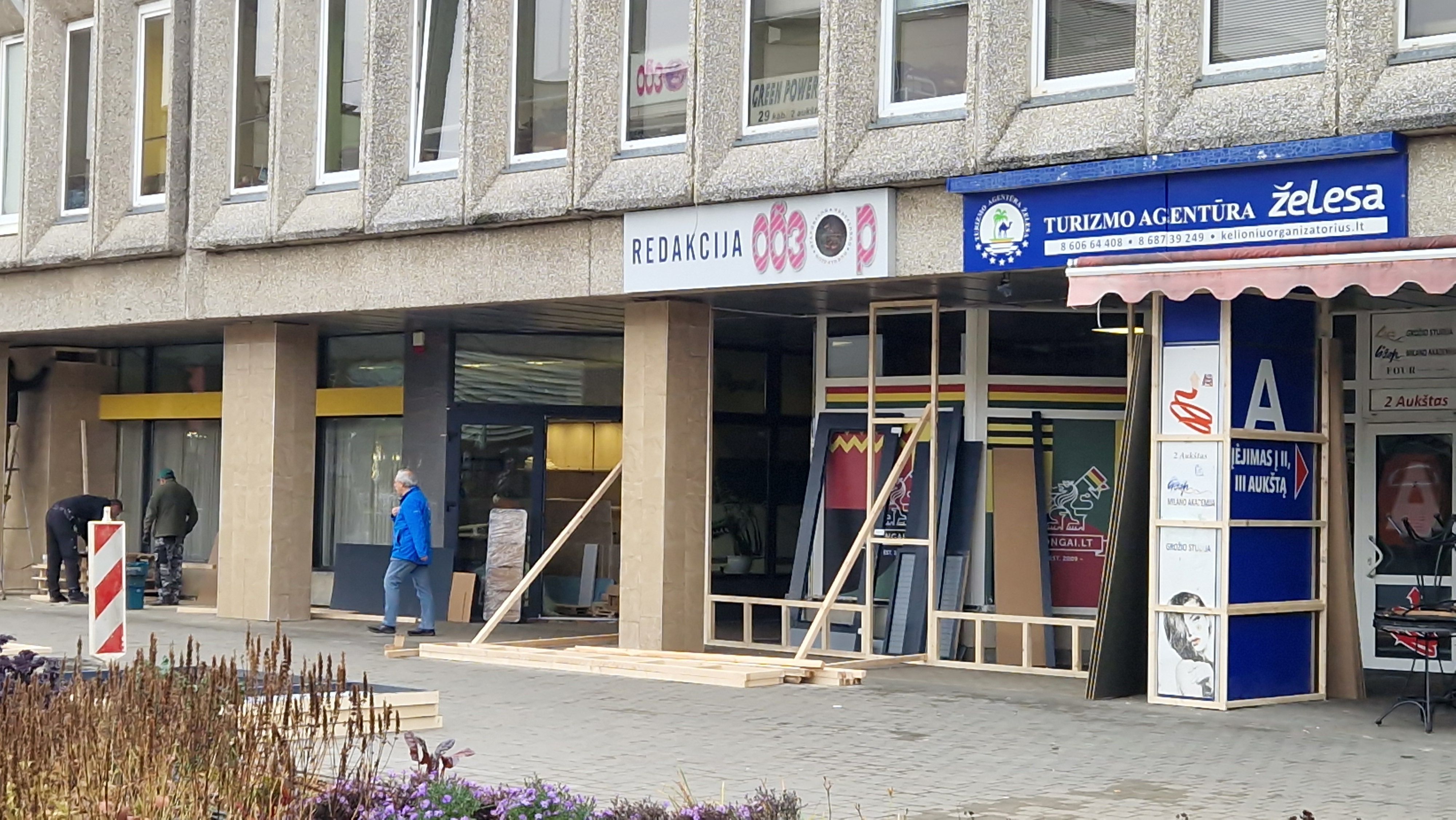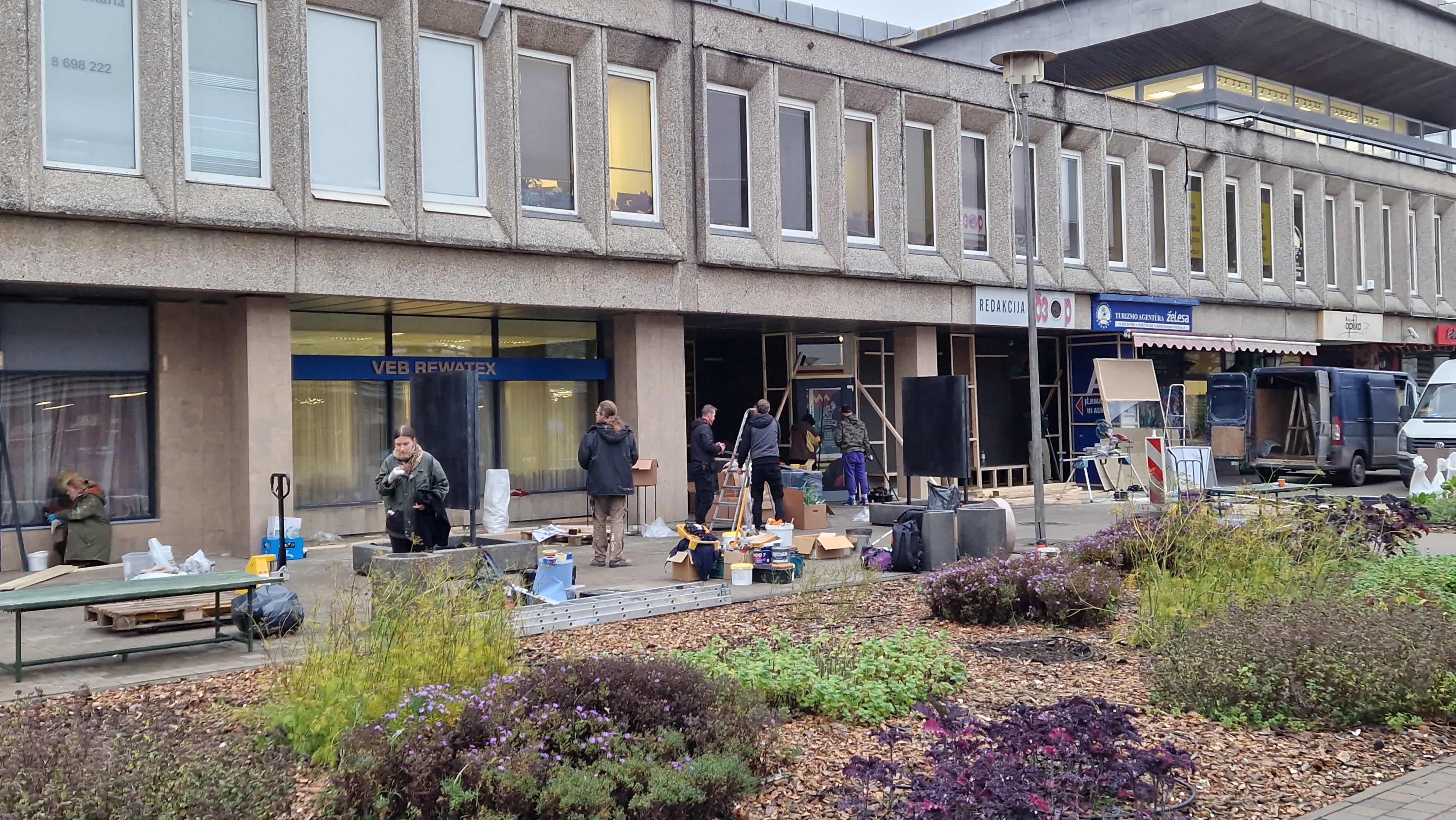 Два дня велись подготовительные работы, после которых часть длинного здания по адресу проспект Конституцийос, 12, превратилась в кусочек ГДР.