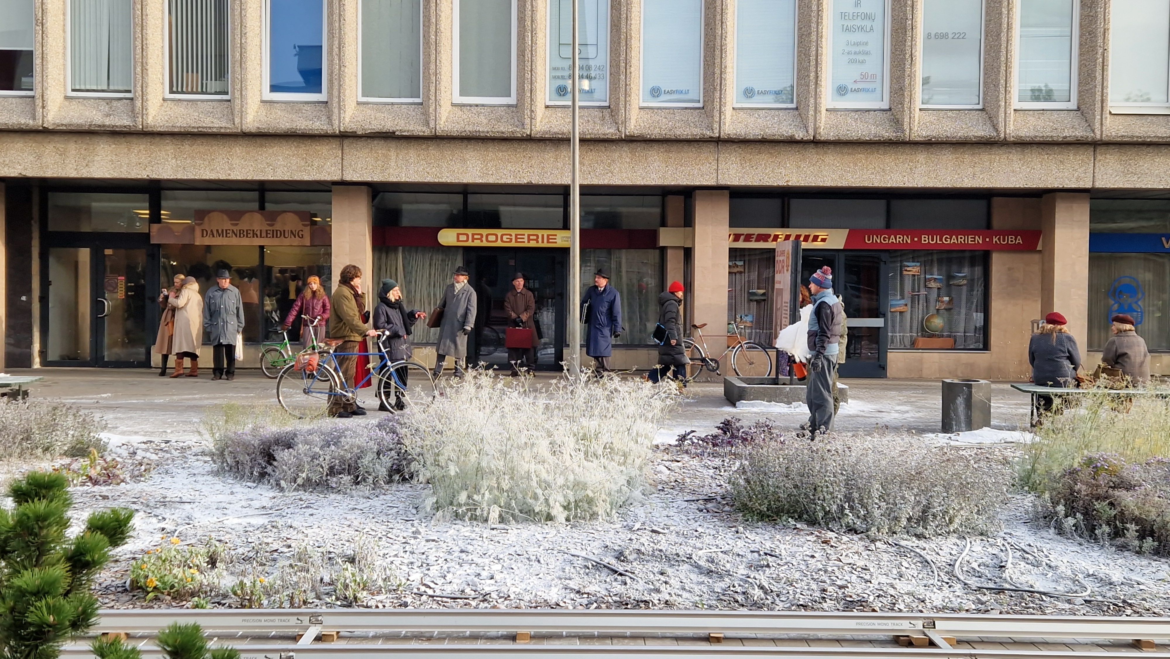 Судя по установленным киношниками рекламным щитам с изображением одного из лидеров ГДР – Эриха Хонеккера, и с учётом того, что на состаренных явно специально щитах было написано «30 лет ГДР», то на экране оживёт история где-то 1979-1985 годов.