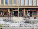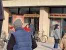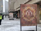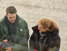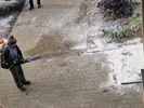 Попадающая в кадр местность должна была быть слегка припорошенной снегом, но порывы ветра то и дело откидывали синтепон и белую крошку у фонарного столба, обнажая серый тротуар. И несколько человек тут же бросались, чтобы устранить безобразие…