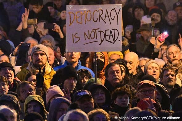 В Словакии тысячи людей также собрались в Братиславе и других городах на митингах, организованных оппозиционными партиями и гражданскими группами. Участники акций выступили против пророссийской политики премьер-министра Роберта Фицо и отхода страны от демократии.