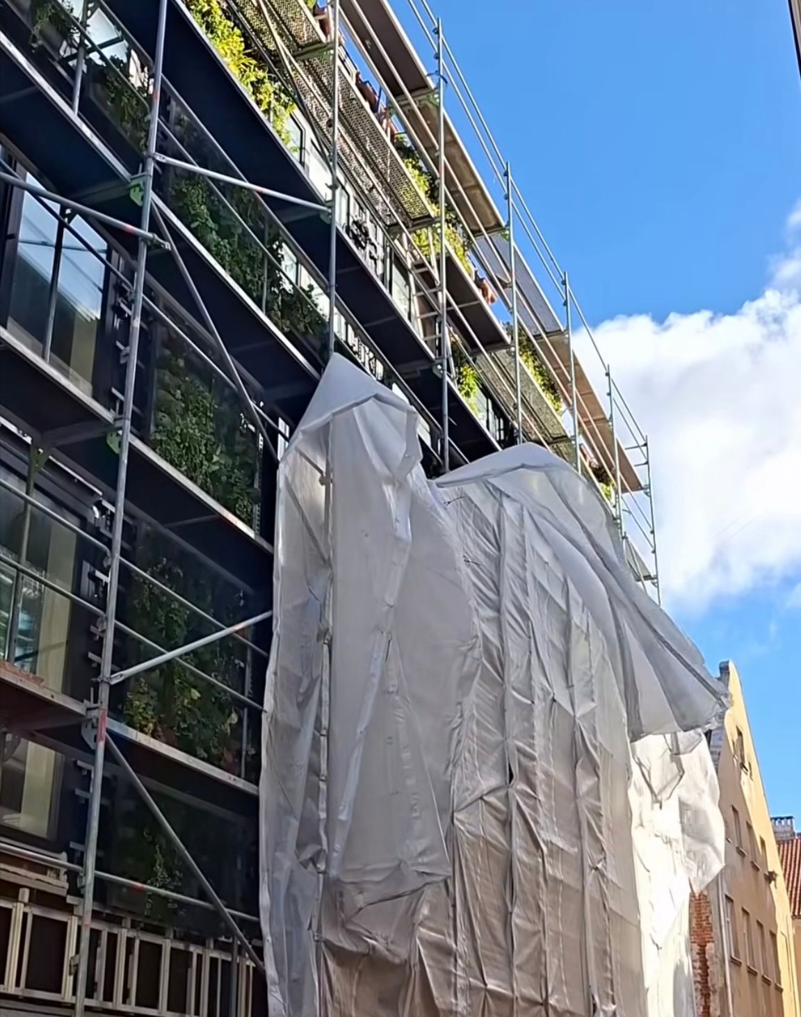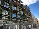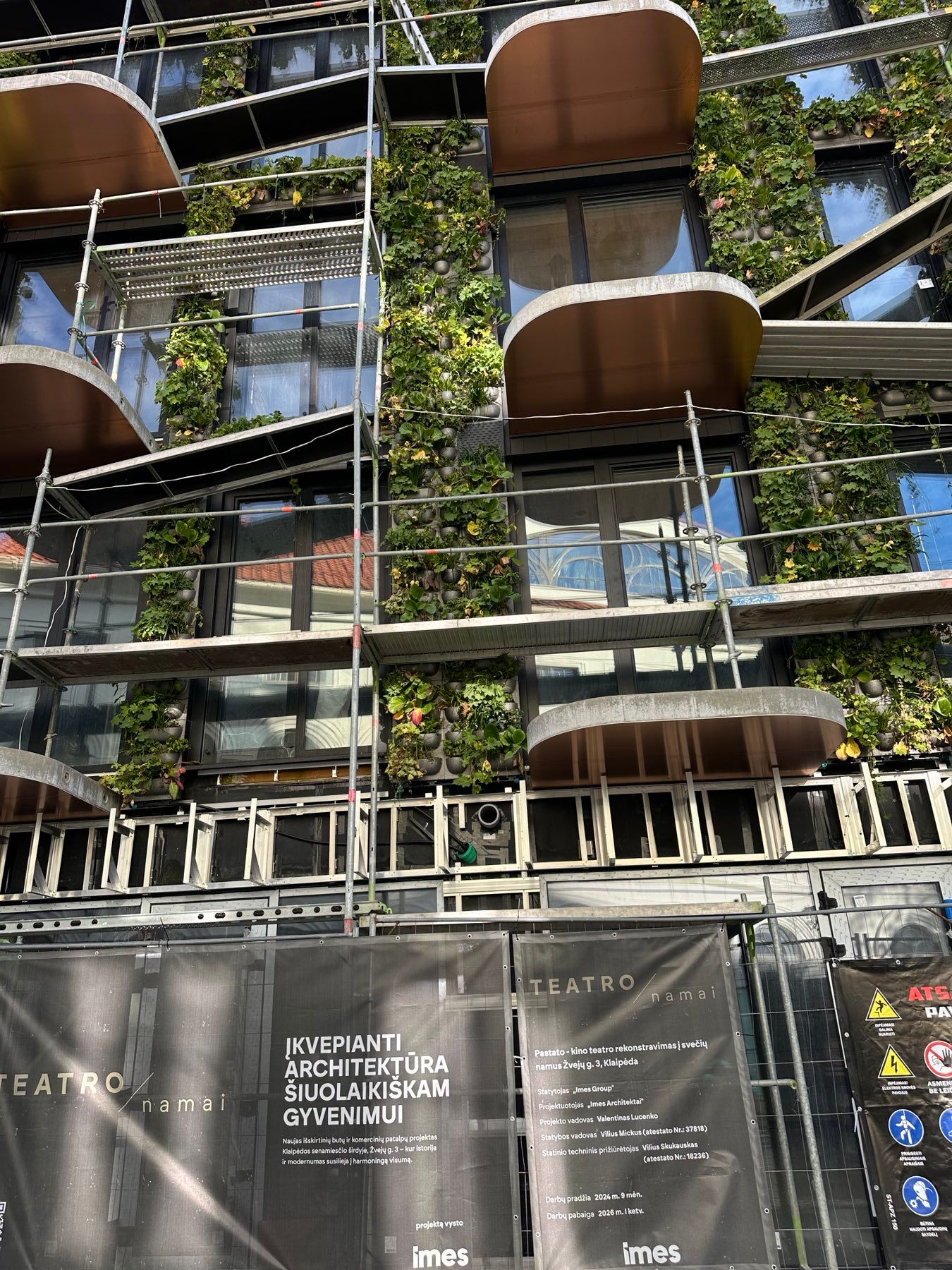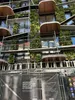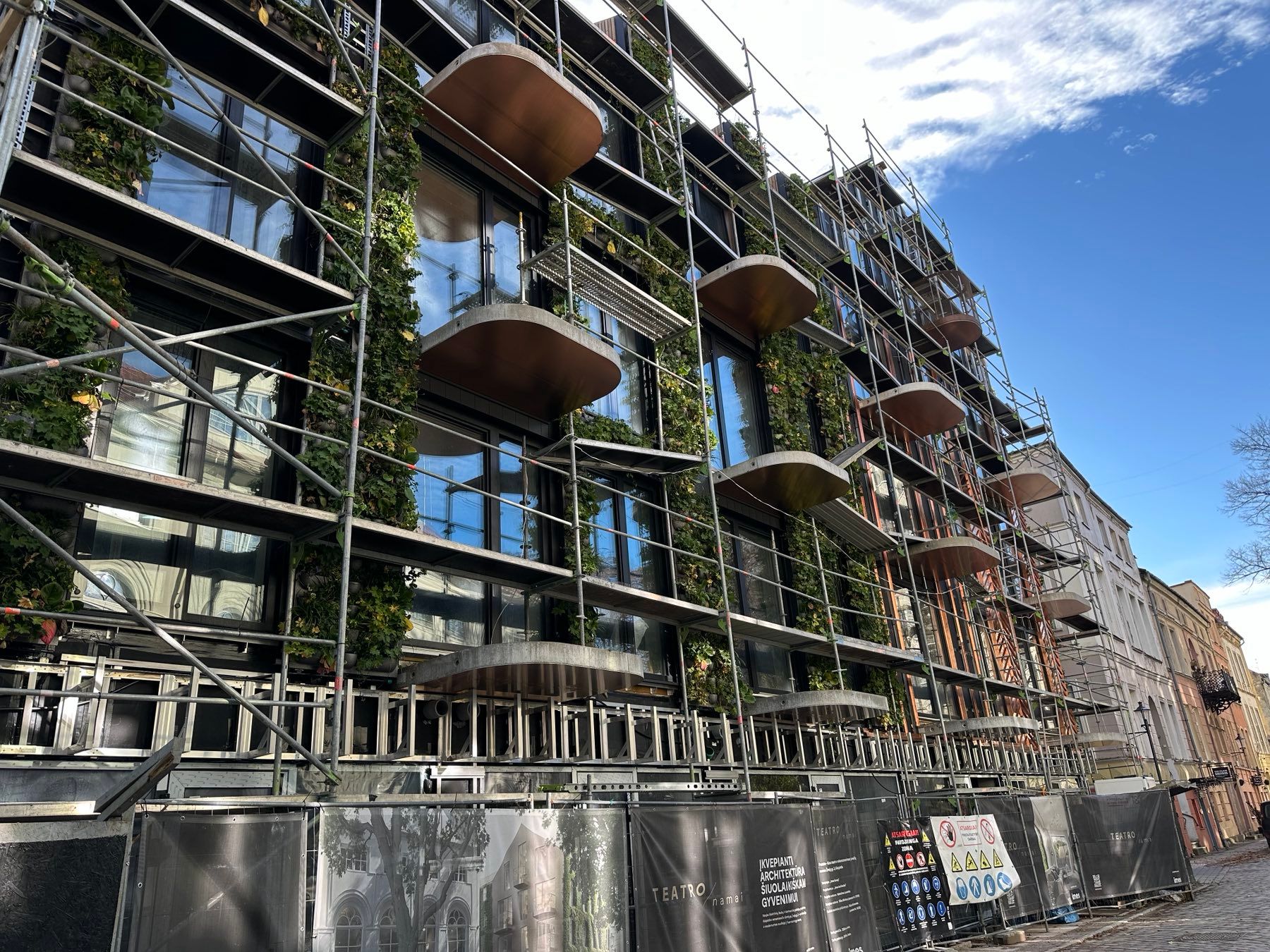 Четырёхэтажное здание, облицованное плитками, с медными деталями и зелёными растениями, с округлыми балкончиками-мансардами, уже красуется перед прохожими своим дизайном.