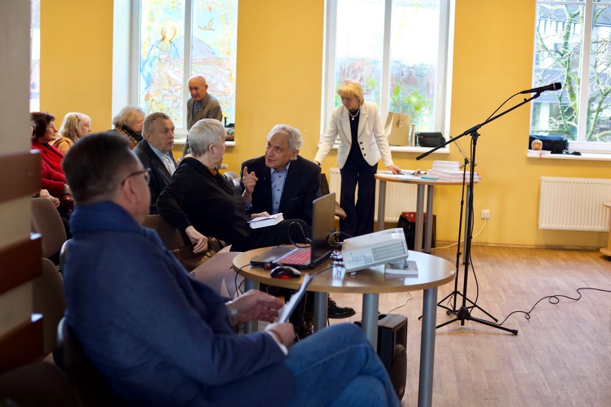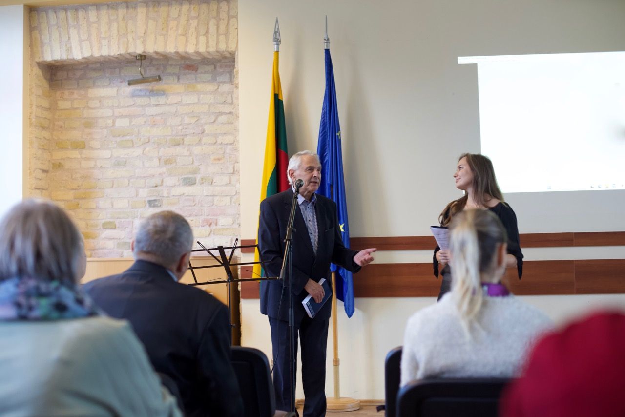 Затем Елена Жолонко поприветствовала представителей культурного сообщества Литвы: директора Дома национальных общин Риту Новикене, президента Республиканского общества Международной ассоциации писателей и публицистов (РО МАПП) Льва Месенгисера, доктора гуманитарных наук Эляну Суодене, руководителя литературной студии «Поэтоград» (Каунас).