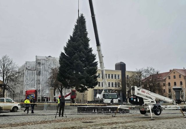 Зелёная красавица высотой более 10 метров была выбрана из 18 претенденток и привезена из городка Вежайчяй Клайпедского района.