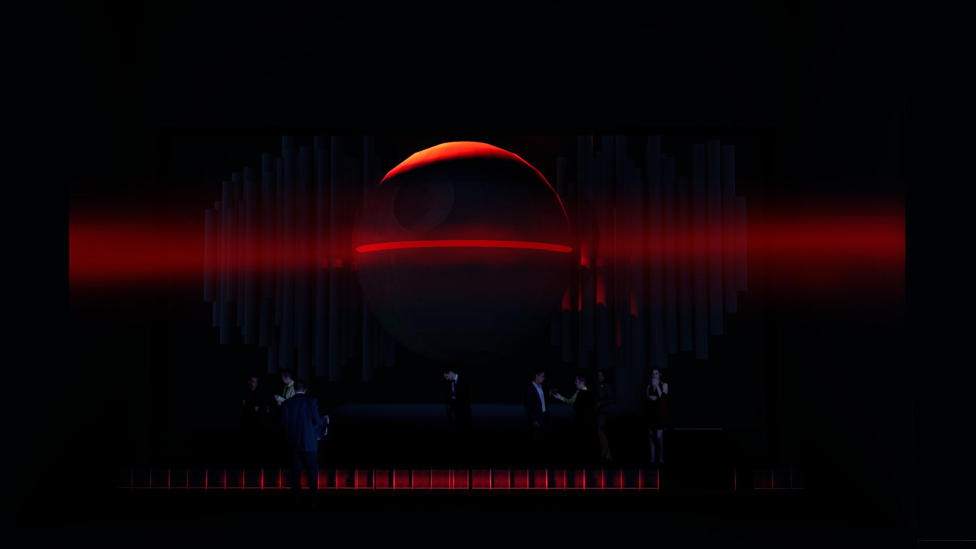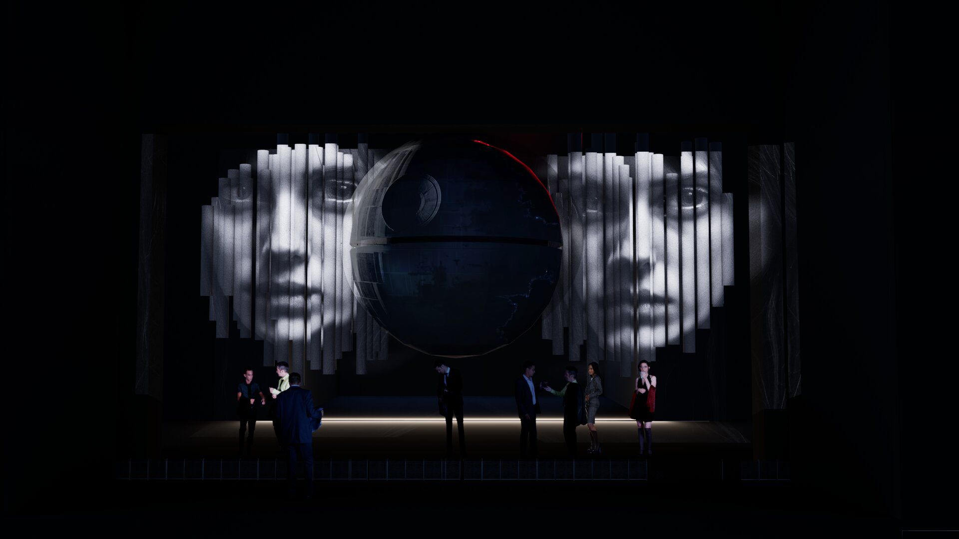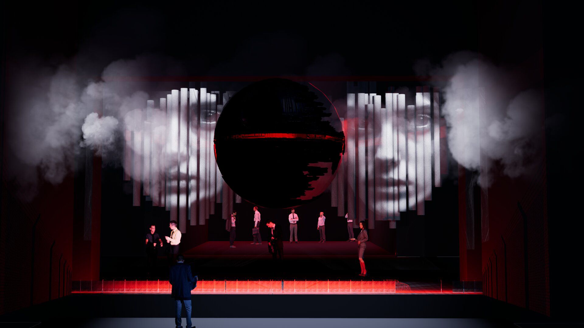 Эта интерпретация «Венецианского купца» Уильяма Шекспира – не историческая стилизация, а отражение сегодняшних политических и социальных напряжений. Нависающая над сценой чёрная сфера, иконография поп-культуры и политики, а также ландшафт страхов современного человека становятся визуальным ядром спектакля.