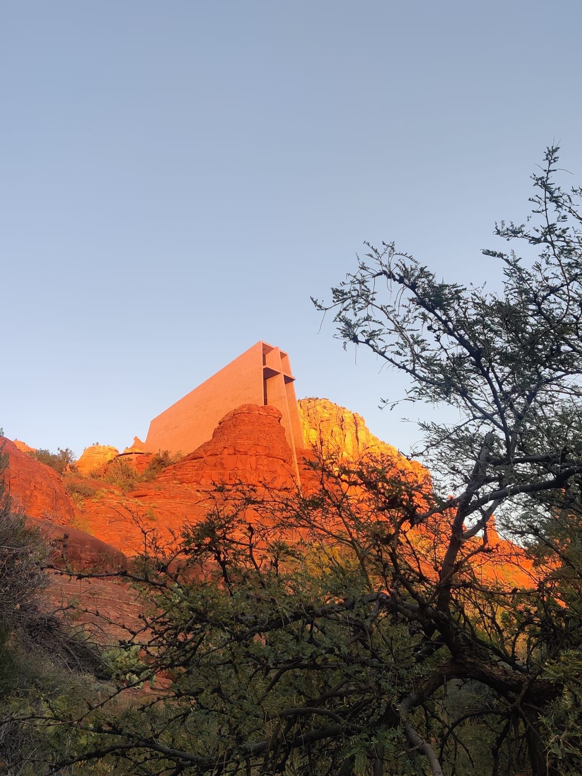 По дороге в Седону (Sedona), заехали к буддийскому храму, от него маршрут был запланирован к католическому костелу. Людей много, буддийский.храм видел впервые, в костёле очень понравилось распятие, впечатлило. Уже из костёла поехали к месту ночлега. Отдохнули и пошли смотреть вечерний город. Это отдельная история, вечером город выглядит совсем по другому. Очень было интересно смотреть на архитектуру и витрины магазинов. Вроде везде одно и тоже, но здесь витрины завораживали, было очень много интересного, много подчеркнул новых идей.
