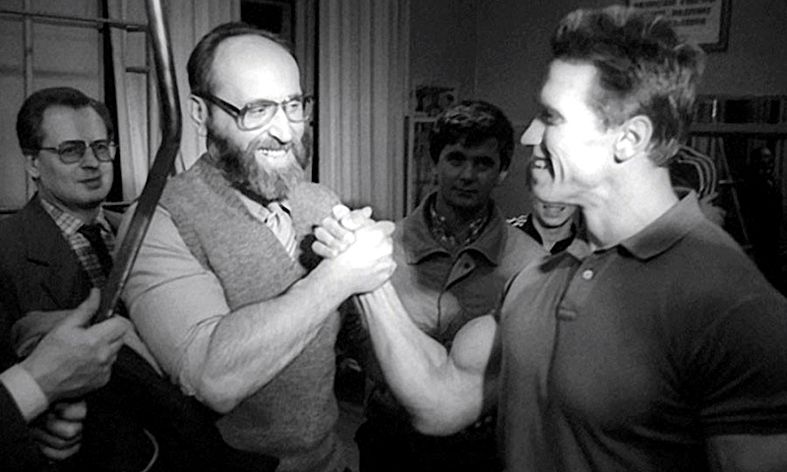 Арнольд очень хотел познакомиться с самым сильным человеком планеты. Власов ему через переводчика пожелал успехов в спорте и поддержал морально, призывая продолжать тренировки, несмотря ни на что.