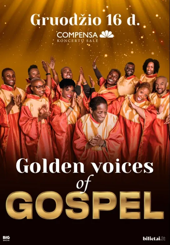 Golden Voices of Gospel — вокальный ансамбль, который вот уже более 20 лет под руководством харизматичного Ревенда Дуайта Робсона, выросшего в традициях церковного пения, коллектив исполняет не просто песни — они делятся с залом своей душой. В их исполнении прозвучат такие хиты, как Hallelujah, Oh Happy Day, Feliz Navidad, Go Down Moses и другие.