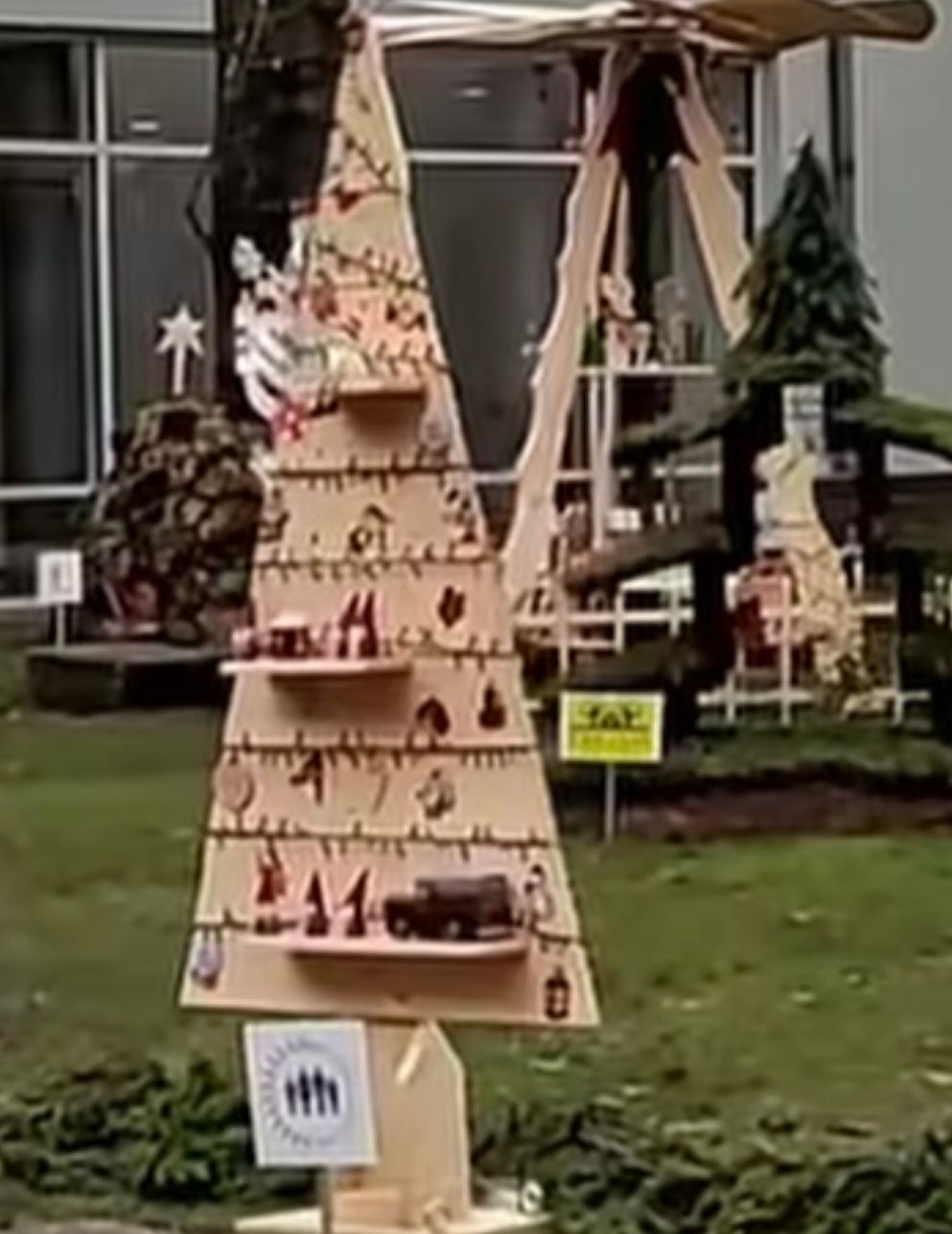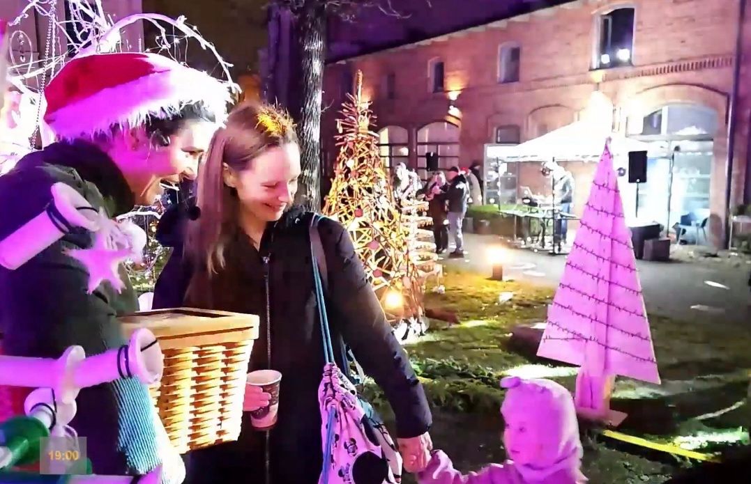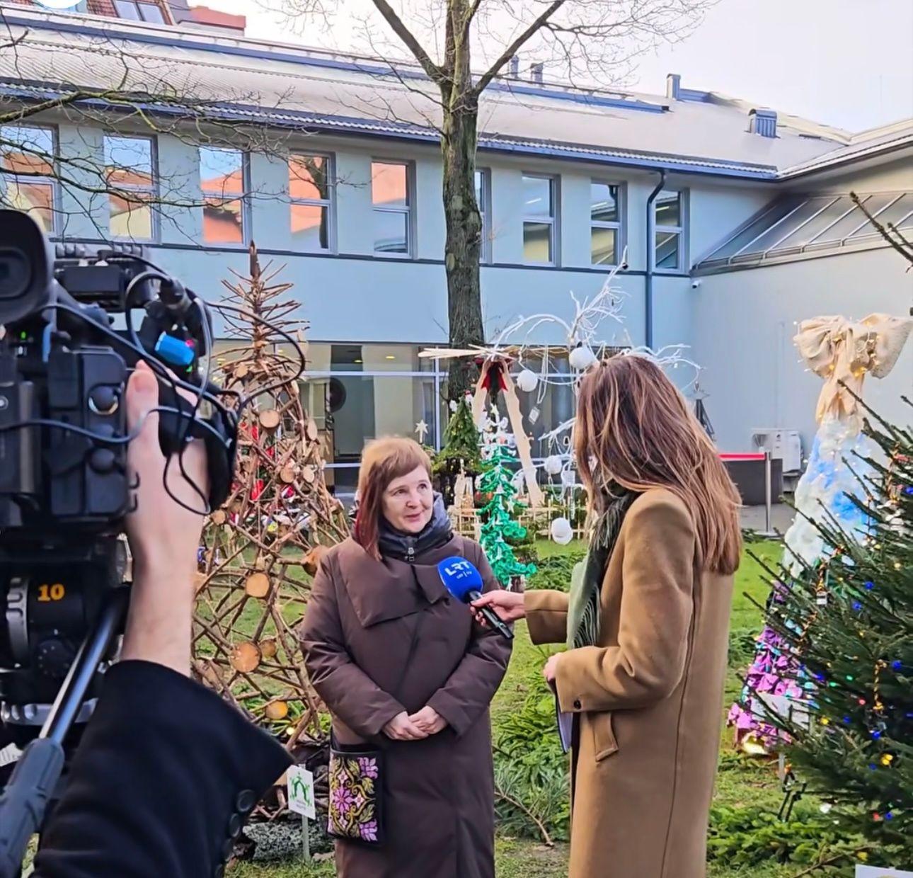 Праздничный дворик библиотеки 9 декабря по давней традиции принимал всех желающих на открытии необычной выставки ёлочных изделий. Принимал не только горожан, но и представителей телевизионной команды LRT.