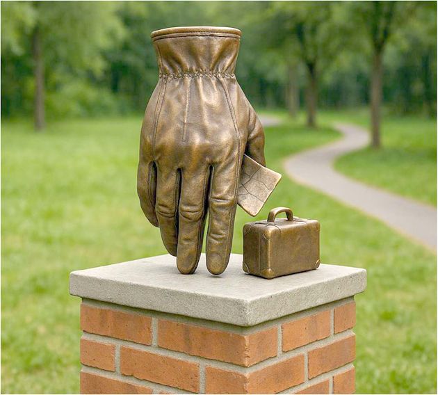 Потерянная перчатка – предмет, узнаваемый каждым, часто встречающийся на улицах или в парках. Художник превращает её в произведение искусства, возводя её из повседневной жизни в культурный контекст. Карта и чемодан продолжают тему путешествий, направления и поиска идентичности, в то время как карта Вильнюса подчёркивает конкретное место и контекст города – произведение становится неотделимым от Вильнюса.