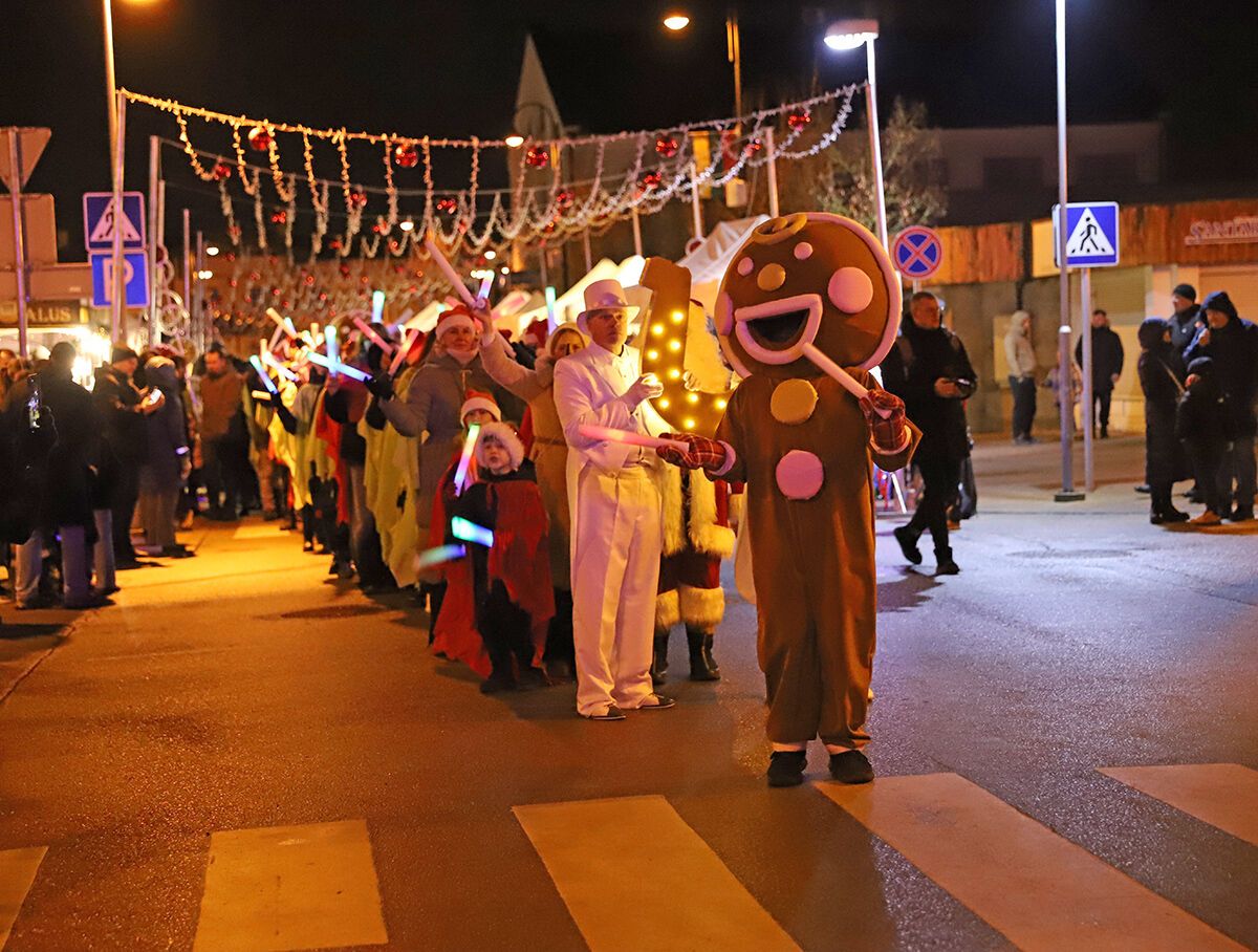 Церемония открытия началась с шествия Рождественкого Деда и его свиты, а также выступления победителя проекта «LNK iššūkis. Naujas hitas», автора и исполнителя жемайтийского хита «Į kalnus» Гедиминаса Йокубаускаса и артиста Рокаса Яна.