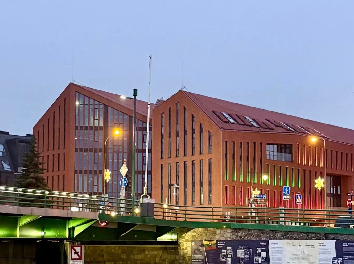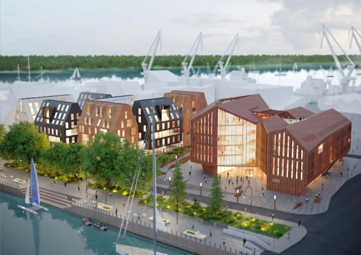 Строительство целого комплекса зданий уже близится к завершению. Дома, построенные вдоль реки Данге, украшают приморский город своим дизайном. Этот район очень значимый для клайпедчан и гостей города. Ведь отсюда отправляются пассажирские паромы на другую сторону залива, а на противоположной стороне реки, у причала Куршского залива, пришвартовываются шикарные круизные суда.