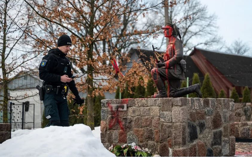 По данным агентства BNS, в осквернении памятника в Меркине были обвинены Венков (2005 г.р.), Силин (1982 г.р.) и Патраков (1987 г.р.). Последний является гражданином России, у двух других двойное гражданство Эстонии и России.